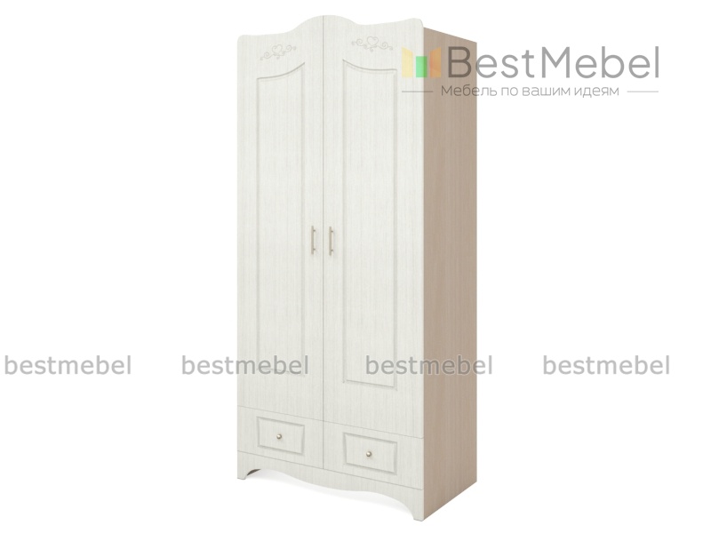 Шкаф для одежды и белья двухстворчатый Купидон BMS – это классический дизайн, компактные размеры и вместительность. Фигурно вырезанные фасады светлых древесных тонов декорированы фрезеровкой. За распашными дверцами располагаются штанга для вешалок с одеждой и антресольная полка. В основании – удобные выдвижные ящики для мелочей. Купить шкаф для одежды и белья двухстворчатый Купидон BMS по доступной цене вы сможете в нашем интернет-магазине.