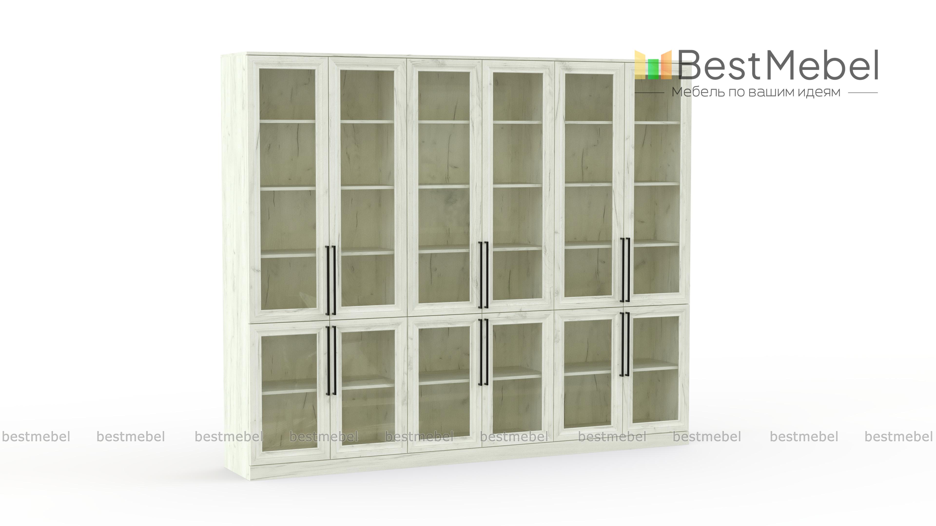 Шкаф книжный Рим 5 BMS с застекленным фасадом будет востребован в домашнем интерьере, офисе или библиотеке. Внутри шести распашных отделений — больших и малых, расположены полки для книг и журналов, документов, предметов коллекции и других памятных вещей. На дверцы классического дизайна с фрезерованными рамками установлены удлиненные стильные ручки. Купить шкаф книжный Рим 5 BMS с выбором размеров, цвета и фурнитуры вы сможете в нашем интернет-магазине.