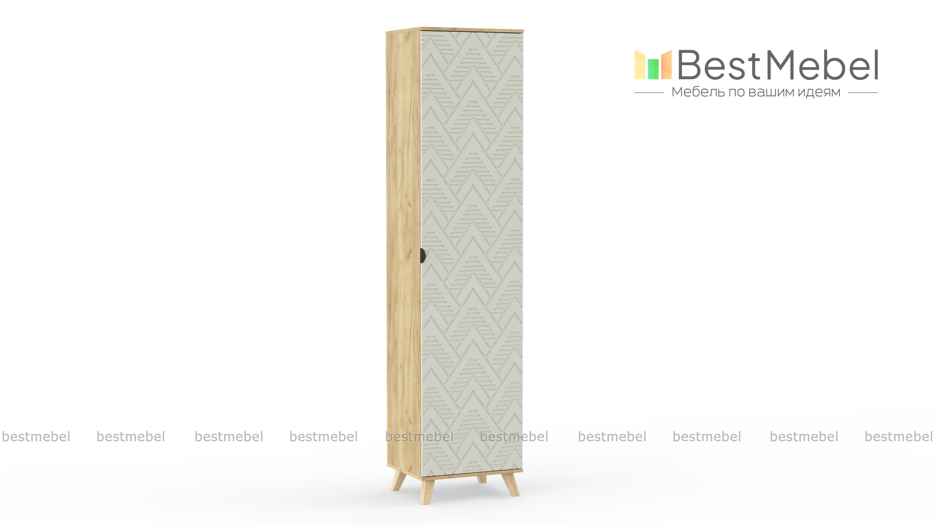 Шкаф-пенал Голд Лайт 1 BMS с оригинальной фрезеровкой в духе сканди и корпусом под массив дерева станет ярким элементом дизайна спальни или гостиной. Однодверная модель не занимает много места и выглядит легкой благодаря высоким опорам. Для комфортного пользования на распашную дверцу установлена миниатюрная торцевая ручка, не закрывающая фасад. Купить шкаф-пенал Голд Лайт 1 BMS для удобного и эстетичного хранения вы сможете на сайте нашего интернет-магазина.
