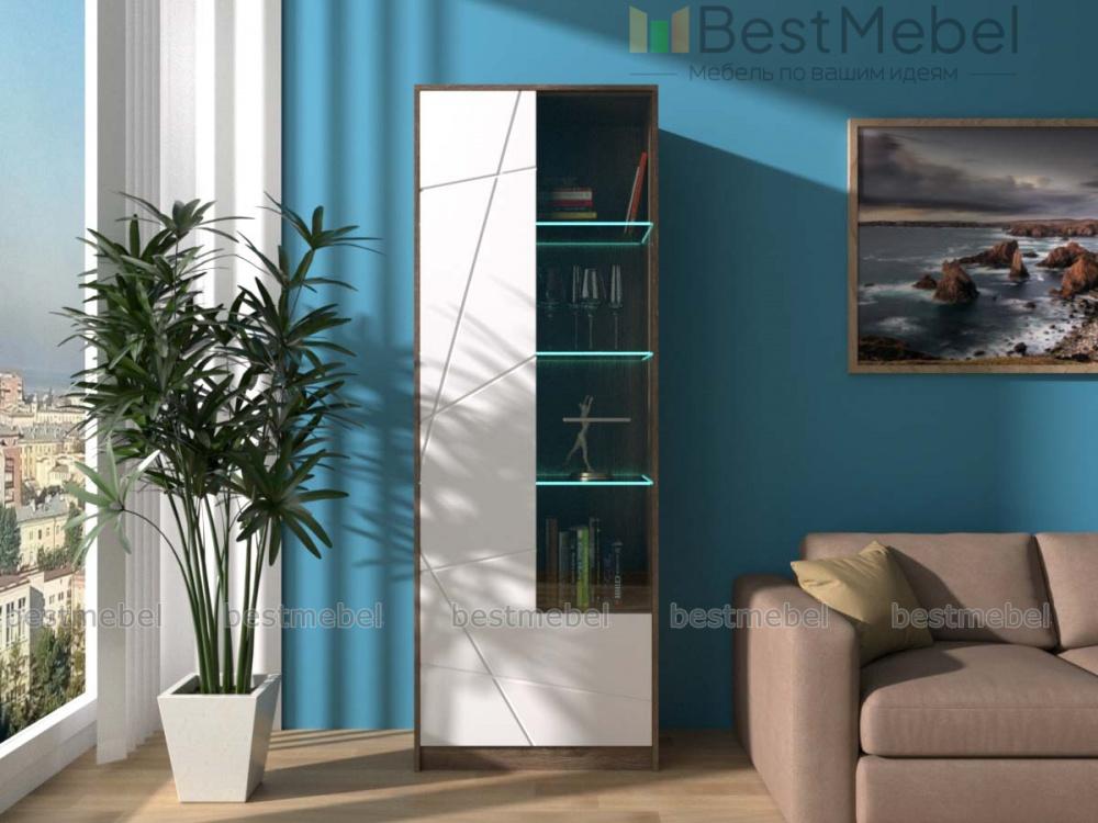Шкаф-пенал Ирго 1 BMS привлекает эффектным минимализмом, подчеркнутым комбинацией корпуса темных древесных тонов и белоснежного фасада с геометричной фрезеровкой. Лаконичный шкаф оборудован распашным застекленным отделением с полками для хранения посуды, книг, разнообразных бытовых мелочей и размещения предметов декора. Отделка светодиодной лентой сделает интерьер более уютным и атмосферным. Купить шкаф-пенал Ирго 1 BMS для современной гостиной приглашаем в наш интернет-магазин.