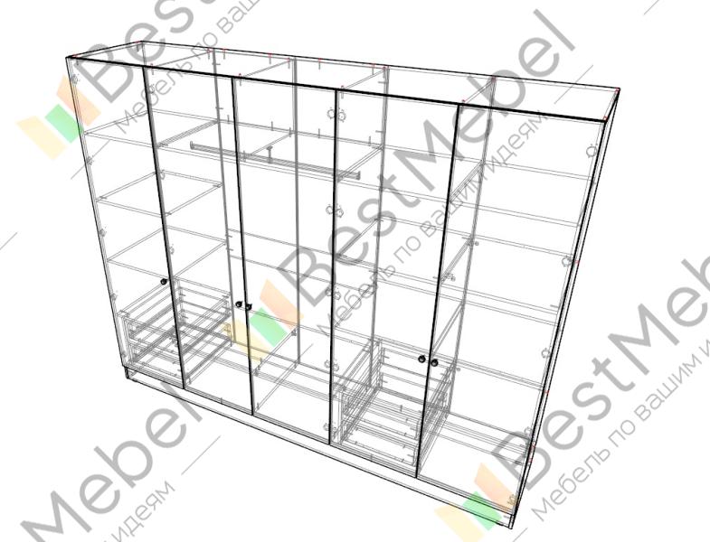Шкаф распашной Бонн 5 BMS отличается прекрасной вместительностью при внешней компактности. Для хранения одежды, обуви и постельных принадлежностей предусмотрены два просторных платяных отделения и ряд полок, расположенный слева. Светлое оформление скрадывает габариты пятидверной модели, а элемент классики вносит рамочный декор. Купить шкаф распашной Бонн 5 BMS вы сможете в нашем интернет-магазине с индивидуальным подбором размеров, цвета и компоновки.