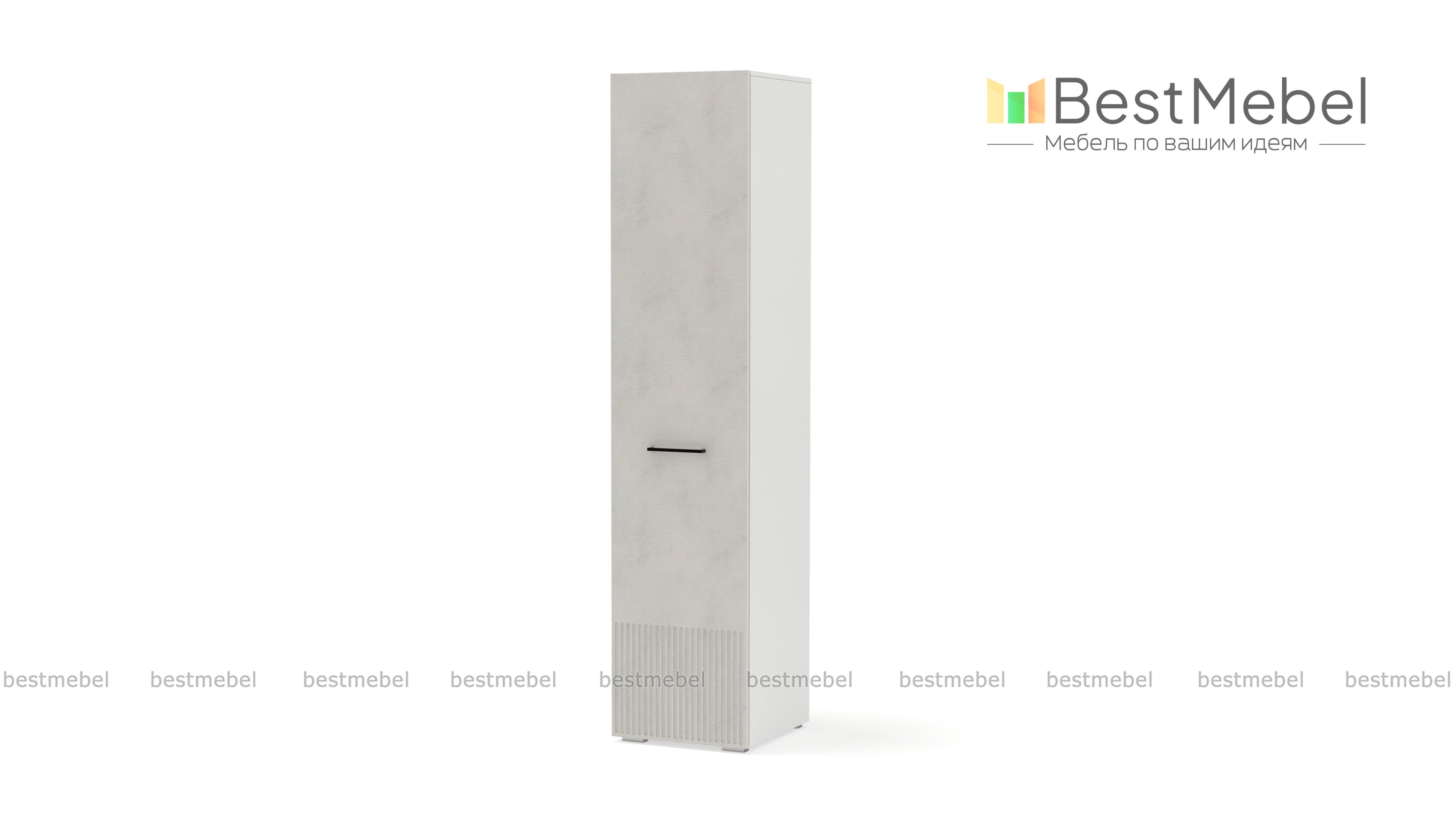 Шкаф распашной Декарт 1 BMS вы сможете использовать отдельно и в сочетании с другими шкафами серии. Пенал в светлом дизайне с фрезерованным декором идеально подходит для компактных комнат. Компоновка с вешалкой и верхней полкой — комфортная база для повседневных вещей, а распашная дверца со стильной ручкой-скобой обеспечивает им отличный обзор. Купить шкаф распашной Декарт 1 BMS приглашаем на сайт нашего интернет-магазина, по желанию изменив цвет и размеры.