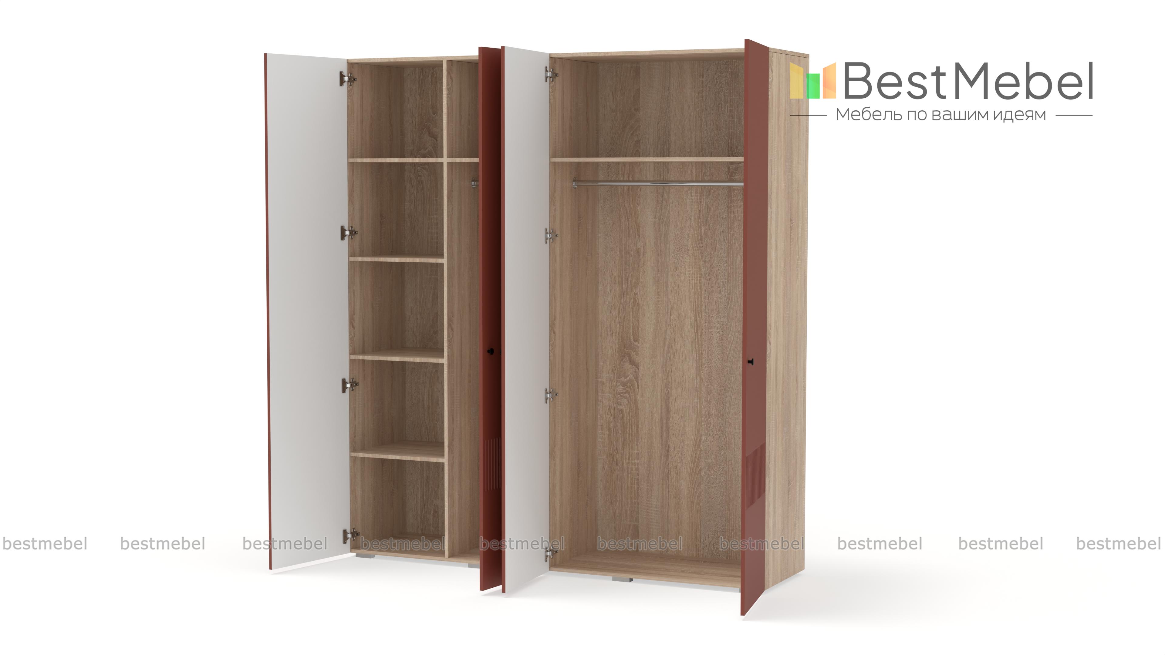 Шкаф распашной Джосс 4 BMS — практичная и стильная четырехдверная модель в прихожую, детскую или спальню. Два отделения со штангами и ряд полок слева помогут вам расположить вещи по категориям — от верхней одежды до трикотажа. Акцентный цветной фасад гардероба украшает фрезеровка, на дверцах установлены миниатюрные круглые ручки. Купить шкаф распашной Джосс 4 BMS вы сможете в нашем интернет-магазине, изменив по желанию размеры, тип ручек и цветовую гамму.