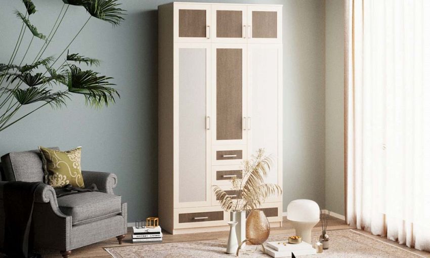 Шкаф распашной Фауст 18 BMS может дополнить интерьер спальни или гостиной и разместит большое количество вещей. Модель практичной комбинированной конструкции оборудована двумя платяными отделениями, одним бельевым, выдвижными ящиками для мелочей и просторной распашной антресолью. Классические рамочные фасады выполнены в контрастных древесных тонах, створки платяных отделений – зеркальные. Купить шкаф распашной Фауст 18 BMS создать комфортный интерьер вам поможет наш интернет-магазин.