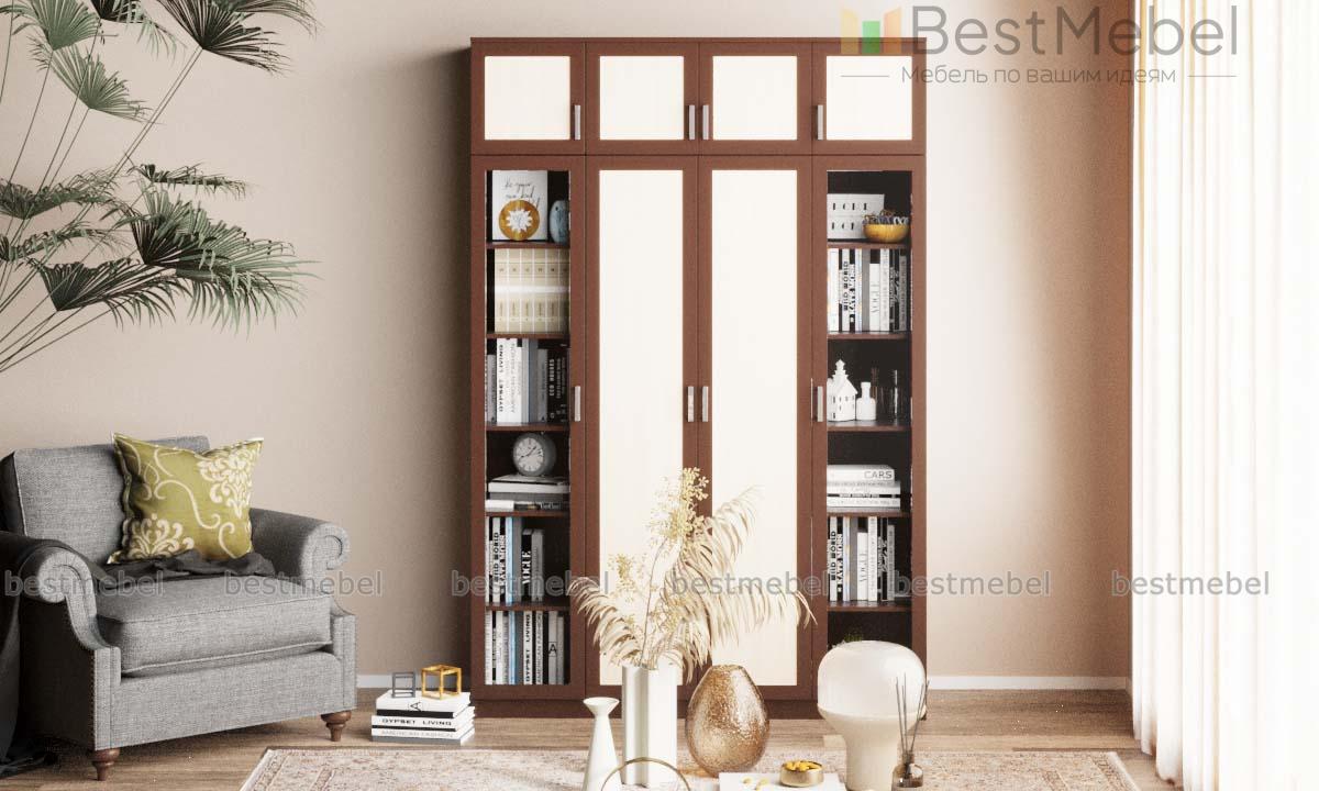 Шкаф распашной Фауст 3 BMS отличается особенной вместительностью благодаря высоте и практичной комбинированной конструкции. Модель оборудована двухдверным платяным отделением, двумя посудными витринами и распашной антресолью для хранения сезонных вещей. Строгие рамочные фасады шкафа выполнены в контрастных древесных тонах, износостойки и долговечны. Купить шкаф распашной Фауст 3 BMS для меблировки современной гостиной вы сможете в нашем интернет-магазине по выгодной цене.
