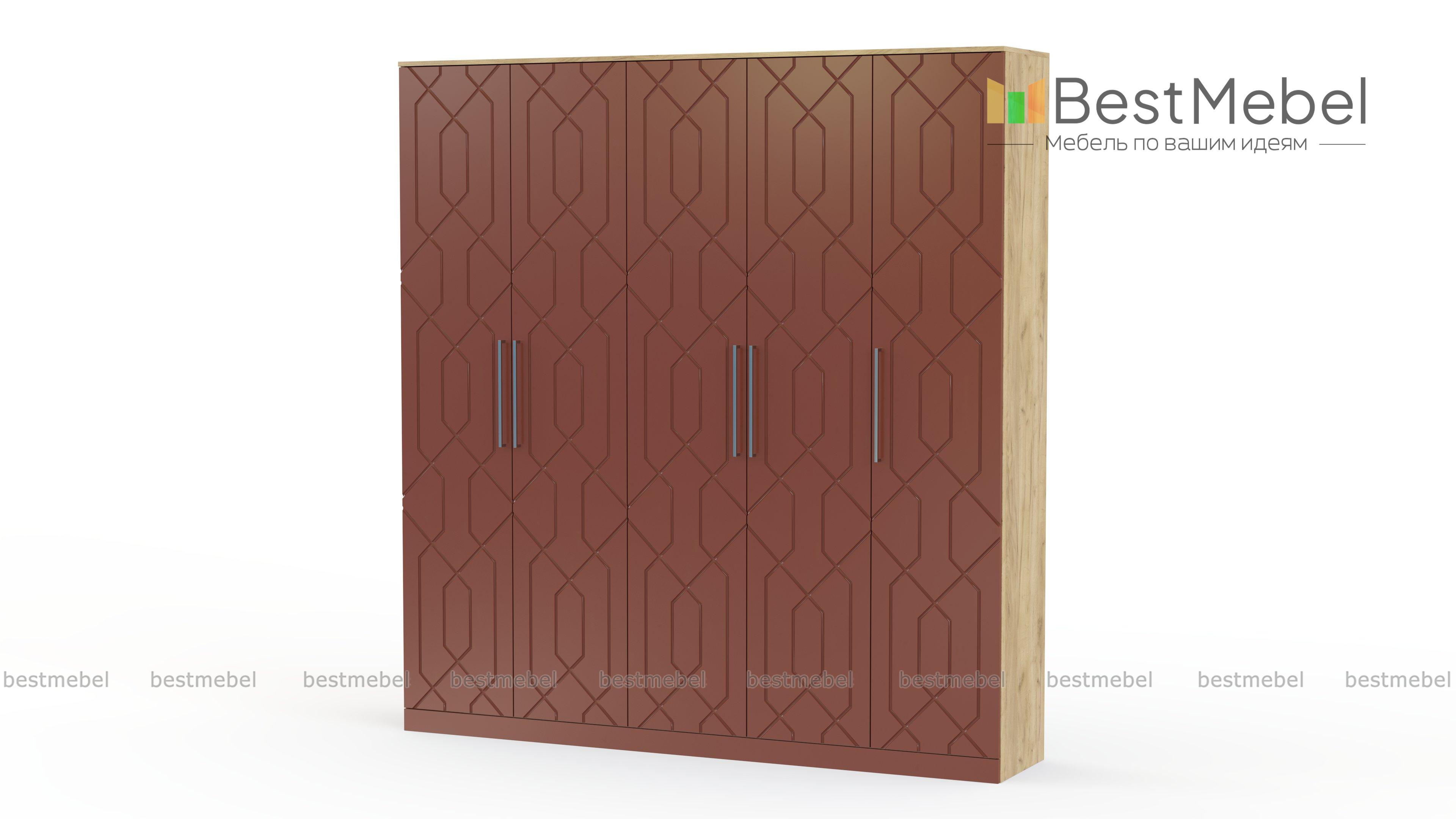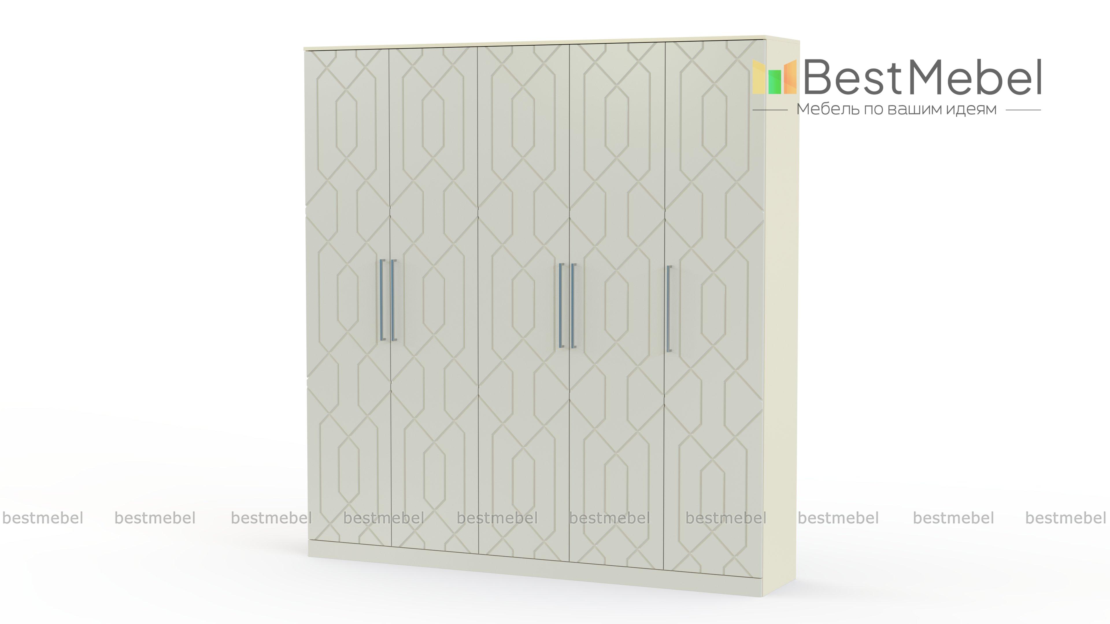 Шкаф распашной Келли 16 BMS эффектно смотрится на контрасте темного корпуса и светлого фасада. Геометрический фрезерованный узор на дверцах придает дизайну особенную выразительность и внешнюю легкость, не требуя дополнительного декора. В пятидверный шкаф легко помещаются гардероб семьи и все необходимые постельные принадлежности. Купить шкаф распашной Келли 16 BMS с возможностью выбора размеров, цвета и компоновки приглашаем к нам в интернет-магазин.