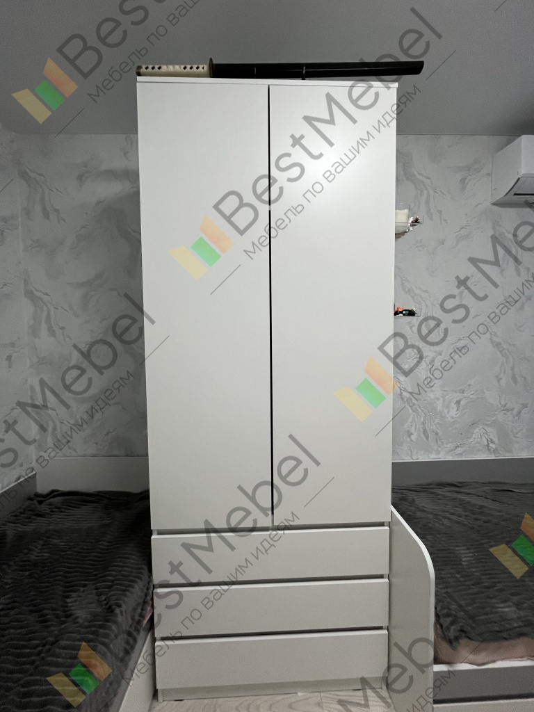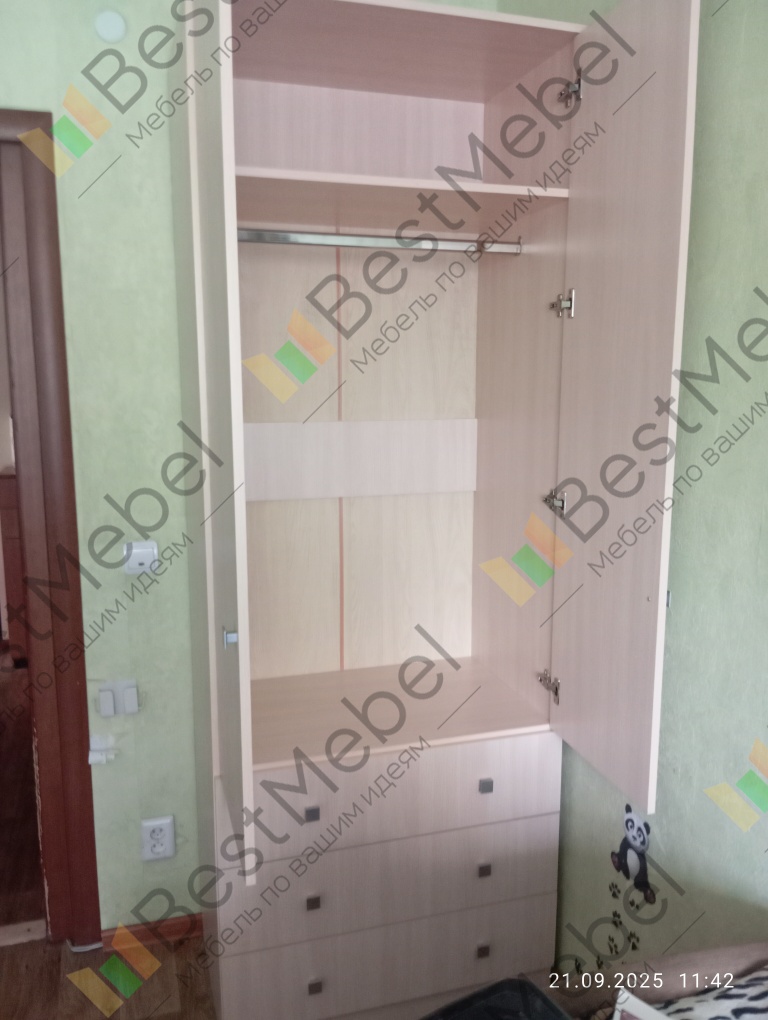 Отличный шкаф! Очень функциональный. Заказывали 80х220. Изготовление и доставка вовремя, сборщик вообще молодец! Приезал на следующий день после доставки, проверил комплект и на брак. Быстро, тихо, аккуратно все собрал. Убрал мусор. Из минусов только доставка, проверяйте доставщиков, у нас неожиданно увеличился километраж от МКАД и цена за подъем, после звонка в компанию все решили. Сам шкаф просто красавчик, лучше чем представляли.                                      |