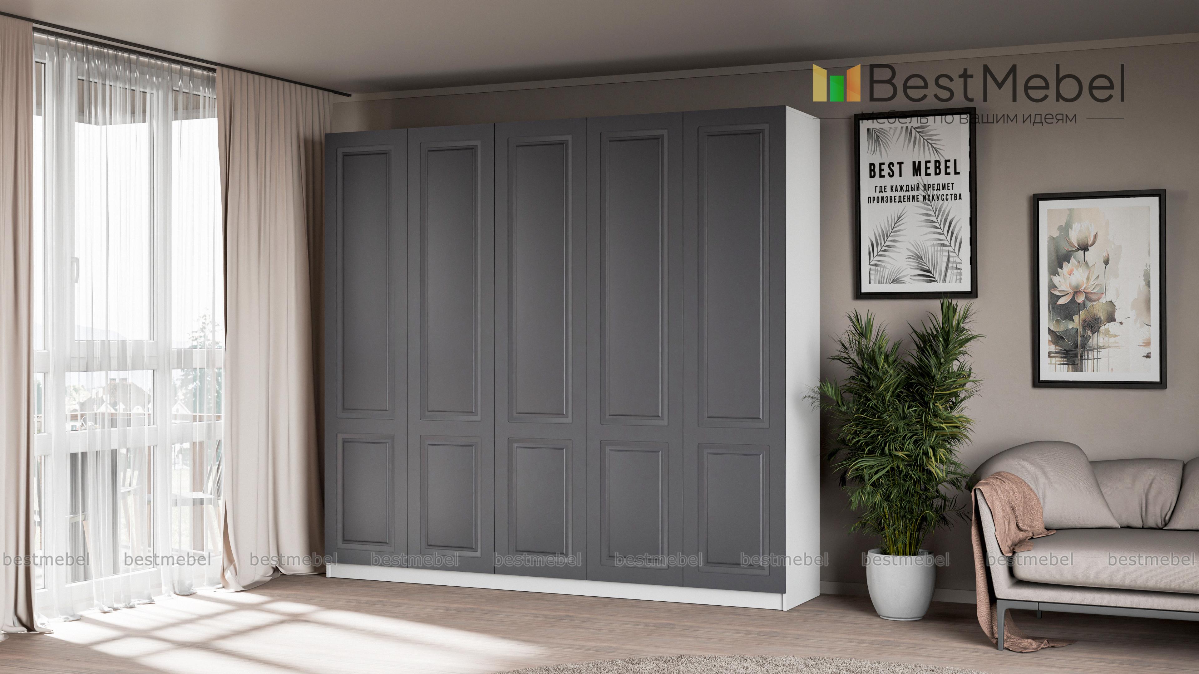 Шкаф распашной Руан 5 BMS - классика в современном исполнении, выполненная из качественных материалов. Вместительная пятидверная конструкция с рамочной фрезеровкой по фасаду органично дополнит прихожие и спальные интерьеры. Два просторных отделения со штангами, верхние полки и бельевой стеллаж обеспечат компактное хранение одежде и постельным принадлежностям. Купить шкаф распашной Руан 5 BMS приглашаем в наш интернет-магазин с выбором размеров, цвета и фурнитуры.