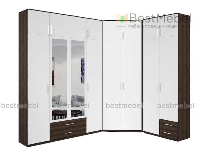 Распашной шкаф Вива № 884 BMS представляет собой элегантную и практичную систему хранения для современного спального интерьера. Визуально легкая композиция с белыми фасадами, декорированными ростовыми зеркалами и вставками древесных тонов, отличается гармоничными пропорциями и делает комнату светлее и просторнее. Распашные отделения с полками и штангами, антресольные секции и выдвижные ящики помогут компактно разместить предметы гардероба и легко найти нужную вещь. Купить распашной шкаф Вива № 884 BMS приглашаем в наш интернет-магазин.