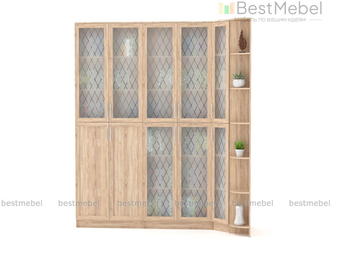 Шкаф книжный Фарфор 2 BMS предназначен для хранения книг, документов, бытовых мелочей и размещения предметов декора. Высокая модель практичной Г-образной формы позволит максимально эффективно использовать пространство. Выполненный в древесных тонах, элегантный шкаф оборудован застекленными отделениями с полками, секцией с глухими дверцами и торцевым стеллажом. Рамочные фасады украшены пескоструйным рисунком. Купить шкаф книжный Фарфор 2 BMS приглашаем выгодно в наш интернет-магазин.