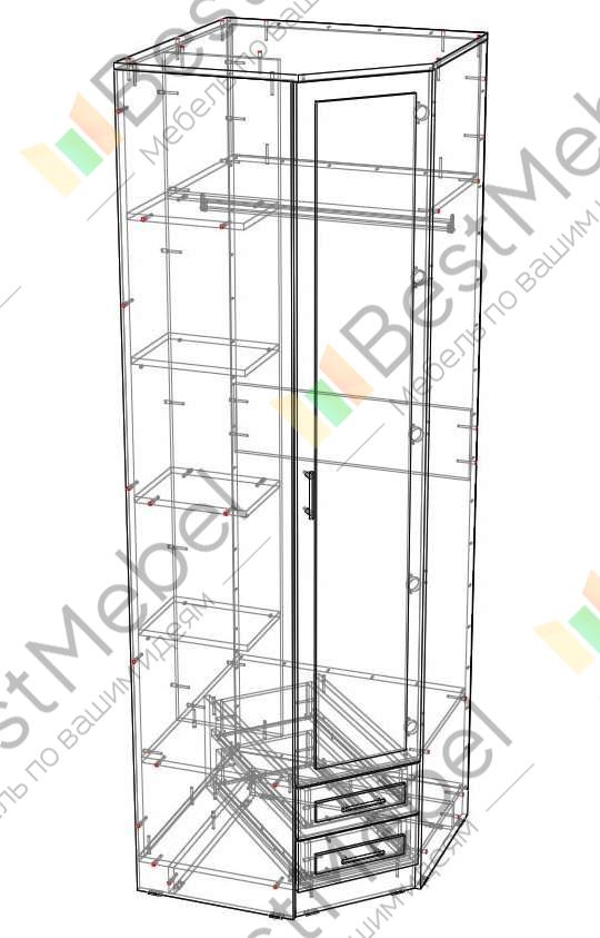 Такой угловой шкаф мы с коллегами покупали шефу в его кабинет в подарок. Дизайн помещения в темных тонах, поэтому и выбрали соответственно цвет Венге для всего шкафа, а не только корпуса. Получилось очень эффектно. Хорошо сочетается с остальной мебелью в кабинете. Отдельная благодарность за своевременную доставку, сюрприз удался, можно просить и отпуск и премию!!!