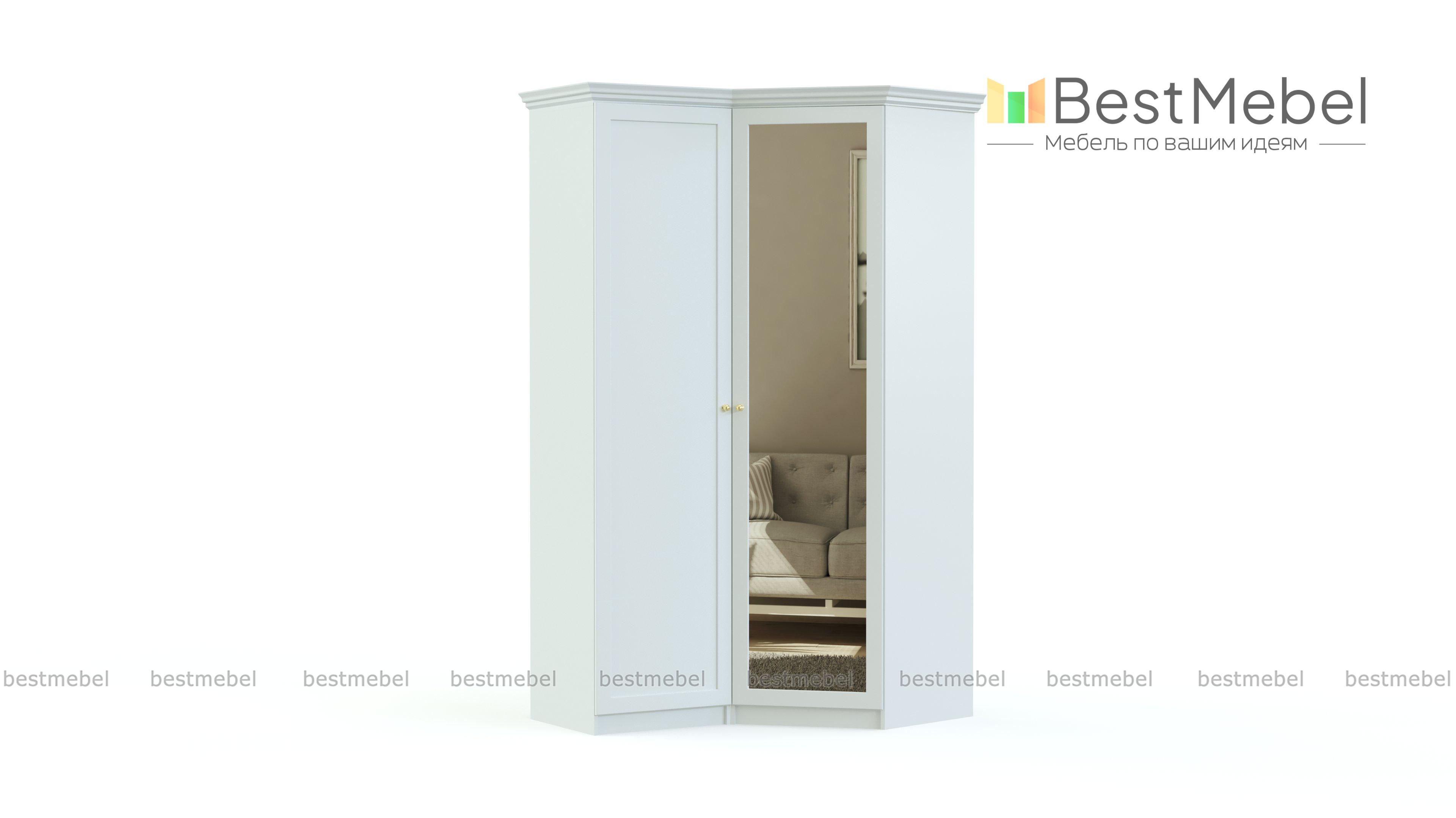 Шкаф угловой Камалия BMS может стать самостоятельным предметом меблировки спальни или частью шкафной группы. Модель с фрезерованными фасадами в глубоких тонах украшена карнизом, ручками-кнопками под бронзу и не оставит равнодушными ценителей классики. Шкаф оборудован двумя распашными дверцами – глухой и зеркальной, внутреннее наполнение из штанги и бельевых полок компактно разместит все необходимое и поможет поддерживать в комнате порядок. Купить шкаф угловой Камалия BMS для элегантного интерьера приглашаем в наш интернет-магазин.