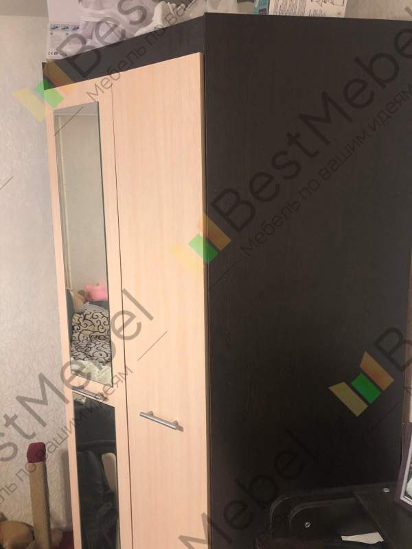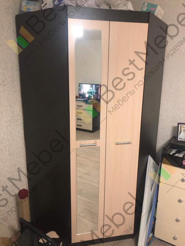заказ 255215.Угловой шкаф. Вроде полно таких на рынке, но вот иногда найти то что надо нерельно особенно если требования своеобразны.В нашем случае, так как потолки не высокие и над шкафом планировался кондиционер - требовалось соблюсти нормы по высоте. т.е. нам нужен был не типовой шкав 2-20, а не более 2х метров - а такие только под единичный заказ. В части возможности сделать любой удобный вам размер бестмебель вне конкуренции. помимо размера, подобрали цвет под уже имеющийся. Угловую-приставную полку под цвет дверей. Как получилось выглядит нам наравиться.Еще обна особенность данной модели - внутренее расположение - !!! всем два отделения для полок и одно для вешать + сверху андресоль. Суппер возможность раскидать мелочь по полкам - зименее в андресль, ну а рубашки повешать. Очень очень довольны покупкой этого шкафа. Даже больше !!! именно из за него и стали клиентами бестмебили.Есть и подороже варианты у них с подобным дизайном - но этот нам по бюджету был в самы раз.
