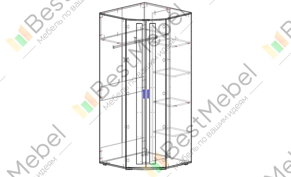 Шкаф угловой Рондо - современная модель для практичных людей. Оригинальное оформление распашных дверей украсит Ваше помещение, будь-то прихожая, спальня или же гостиная. В комплектацию входит секция с платяным отделением с выдвижной штангой под тремпели и вместительной антресольной полкой, секция с 5 полками для личных вещей. Благодаря угловому решению изделие позволяет хранить достаточное количество вещей при этом, не занимая много места. Купить недорого модель Рондо Вы можете у нас на сайте, благодаря действующим скидкам.