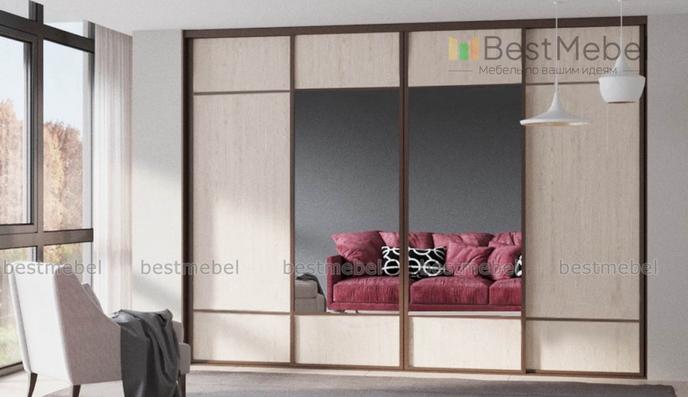 Шкаф-купе Вояж BMS поможет оборудовать гостиную или просторную прихожую практичной системой хранения. Четырехдверная конструкция, полностью заняв одну из стен, скроет недостатки планировки и с максимальной эффективностью использует пространство. Вы сможете оборудовать внутреннее отделение всем необходимым для удобного пользования – штангами, полками, выдвижными ящиками и разместить большое количество вещей. Фасады нейтральных древесных тонов дополнены ростовыми зеркалами. Купить шкаф-купе Вояж BMS по доступной цене приглашаем в наш интернет-магазин.