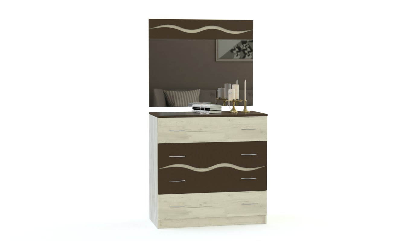 Спальня Гардония 1 BMS привлекает внимание необычным декором фасадов. Выполненные в контрастной гамме и украшенные волнообразными вырезами, они сделают интерьер запоминающимся. Спальня оборудована двуспальной кроватью с высокими ножками в оттенке хром, прикроватными тумбами, вместительным бельевым комодом, навесным панно с зеркалом и четырехдверным шкафом с полками и штангой. Зеркальные дверцы не только практичны, но и добавят помещению недостающий объем. Купить спальню Гардония 1 BMS вы сможете в нашем интернет-магазине.