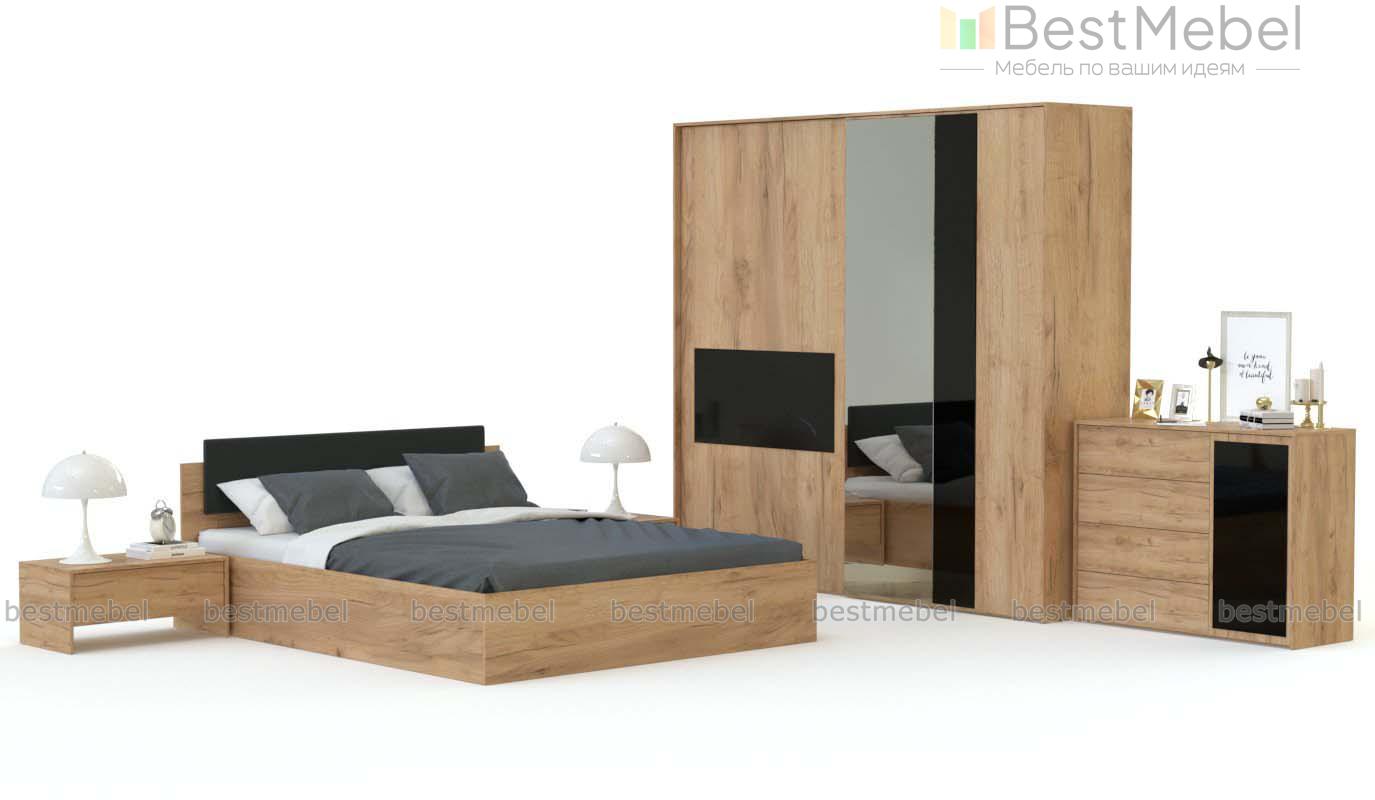 Эта стильная модель привлекает внимание нестандартными дизайнерскими решениями, высокой функциональностью и особой прочностью и долговечностью материалов. Идеально подойдет для современных интерьеров лофт или хай – тэк. Кровать дополнена удлиненными тумбами оригинальной конструкции, которые могут служить полноценными ночными столиками, вместительный шкаф – купе декорирован зеркалом и вставками черного глянца. Выполняется спальня INDIRA 3 BMS в светлых натуральных оттенках массива дуба.