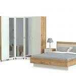 Спальня Мелина 6 BMS поможет вам оборудовать уютную комнату в едином стиле. Продуманная до мелочей композиция включает в себя кровать с мягкой обивкой изголовья, прикроватную тумбу с тремя выдвижными ящиками, незаменимый для ухода за собой туалетный столик в навесным зеркалом и угловую шкафную группу с распашными отделениями для белья и одежды и зеркальными центральными дверцами. Купить спальню Мелина 6 BMS приглашаем в наш интернет-магазин, подобрав оптимальное цветовое решение.