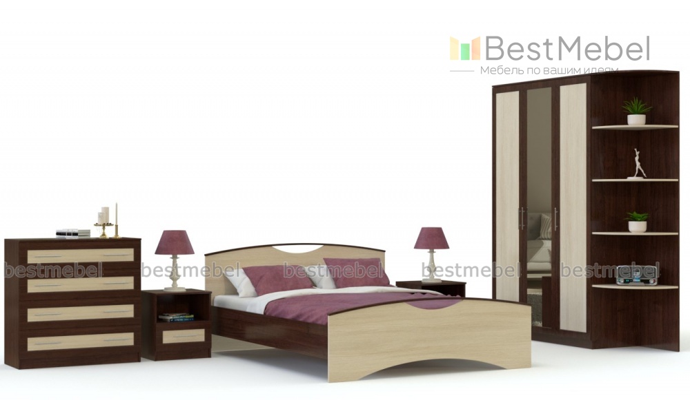 Спальня Милена 5 BMS, несомненно, Вам понравится, если Вы следите за тенденциями мебельной моды, цените полезное пространство и предпочитаете пользоваться им максимально эргономично. Изюминка набора в том, что каждое изделие имеет многоцелевое назначение. На кровати можно беззаботно отдыхать, смотреть ТВ, читать книгу или болтать по телефону. Прикроватные тумбочки сохранят личные принадлежности, позволят поставить светильник, будильник. Поверхность комода можно использовать как туалетный столик, а внутреннее наполнение пригодится для хранения белья. Шкаф с универсальной богатой компоновкой предлагает рассортировать парадную одежду, стопы белья и многое другое. Интерьер спальни украшают внешние полки и калоритное сочетание оттенков. Спальню Милена 5 BMS можете купить в нашем магазине по низкой стоимости.