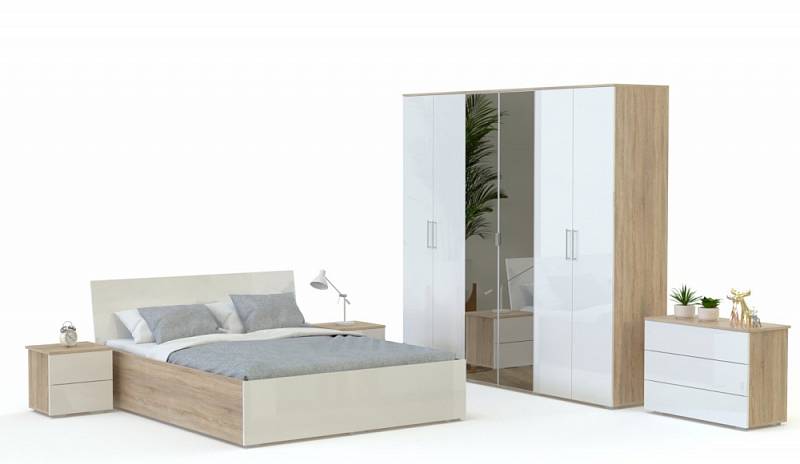 Спальня Модерн 8 BMS – прекрасное сочетание тёплых оттенков, уюта. Глядя на комплект, можно увидеть большой вместительный шкаф для хранения не только личного гардероба, но и постельных принадлежностей. А также, комод с тремя выдвижными ящиками, прикроватные тумбочки ну и, конечно же, шикарное постельное место. Декоративные нежные и зеркальные вставки преображают спальню, придают ей эффекта и изюминку. Купить спальню Модерн 8 BMS по низкой цене можно только на нашем сайте.