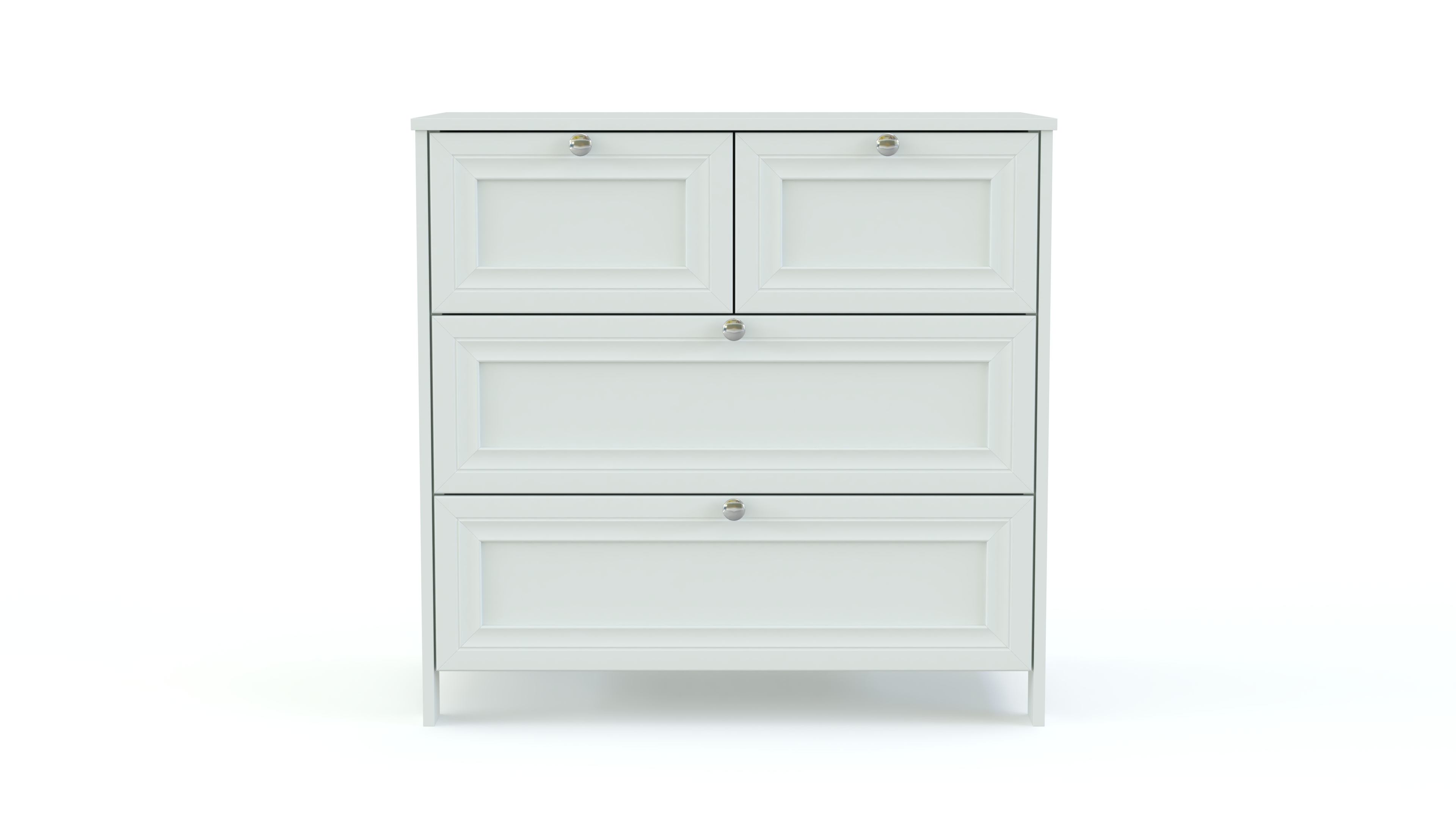 Элегантный классический комплект не выйдет из моды и прослужит вам долгие годы. Спальня Соната BMS состоит из нескольких модулей, которые удобно компоновать по своему вкусу. Это вместительный четырехдверный шкаф с зеркалами в полный рост, комод для белья и мелочей, туалетный столик с навесным зеркалом, кровать и прикроватные тумбы. Мебель выполнена в модных натуральных белых оттенках, а особенное изящество и легкость гарнитуру придают высокие ножки и металлическая фурнитура.