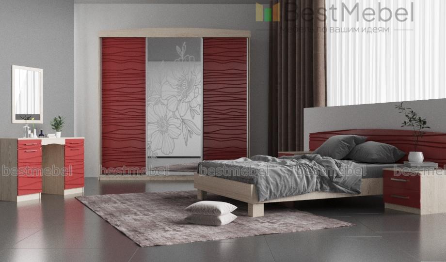 Спальня СП-497 BMS удивляет необыкновенным дизайном, где акцент сделан на ярких фасадах с искусно выполненными рельефами, придающими композиции особый шик. Такую мебель несомненно выберут смелые, активные люди творческих профессий. В стандартном комплекте кровать на две персоны с красиво изогнутым изголовьем, маленькие уютные тумбочки, вместительны шкаф-купе с зеркальной дверью в полный рост, замечательный туалетный столик и строгое настенное зеркало в раме. Высокое качество отделки и применяемых материалов великолепно сочетается с приемлемой ценой. Закажите у нас на сайте спальню СП-497 BMS, чтобы не уставать любоваться уникальным внешним видом и функциональностью многие годы.