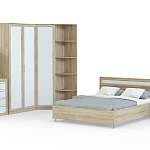 Спальня Токио 7 BMS по-восточному лаконична и выигрышно смотрится на контрасте древесных оттенков. В пространство у изголовья кровати гармонично вписываются две тумбы, для хранения постельного белья, одежды и всевозможных аксессуаров предусмотрены угловой шкаф с торцевым стеллажом и дополненный навесным зеркалом комод. Для отделки фасадов использованы широкие накладки и декоративная решетка. Купить спальню Токио 7 BMS с учетом необходимых размеров вы сможете в нашем интернет-магазине.