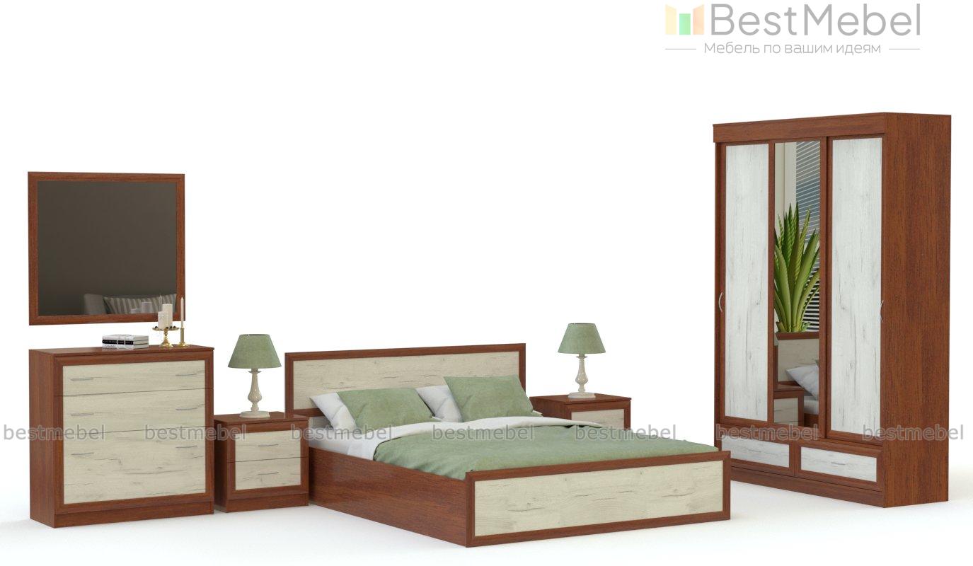 Спальня Валерия 11 BMS – оригинальное дизайнерское решение для вашей комнаты. Комплект, выполненный в сочетании древесных оттенков, выгодно оттенит светлые стены. Гарнитур оборудован всем необходимым: двуспальной кроватью с изголовьем средней высоты, двумя прикроватными тумбами с выдвижными ящиками для хранения бытовых мелочей или уходовых средств, высоким комодом с настенным зеркалом и шкафом с раздвижными дверями для комфортного хранения предметов гардероба. Купить спальню Валерия 11 BMS с выбором цвета по каталогу вы можете в нашем интернет-магазине.