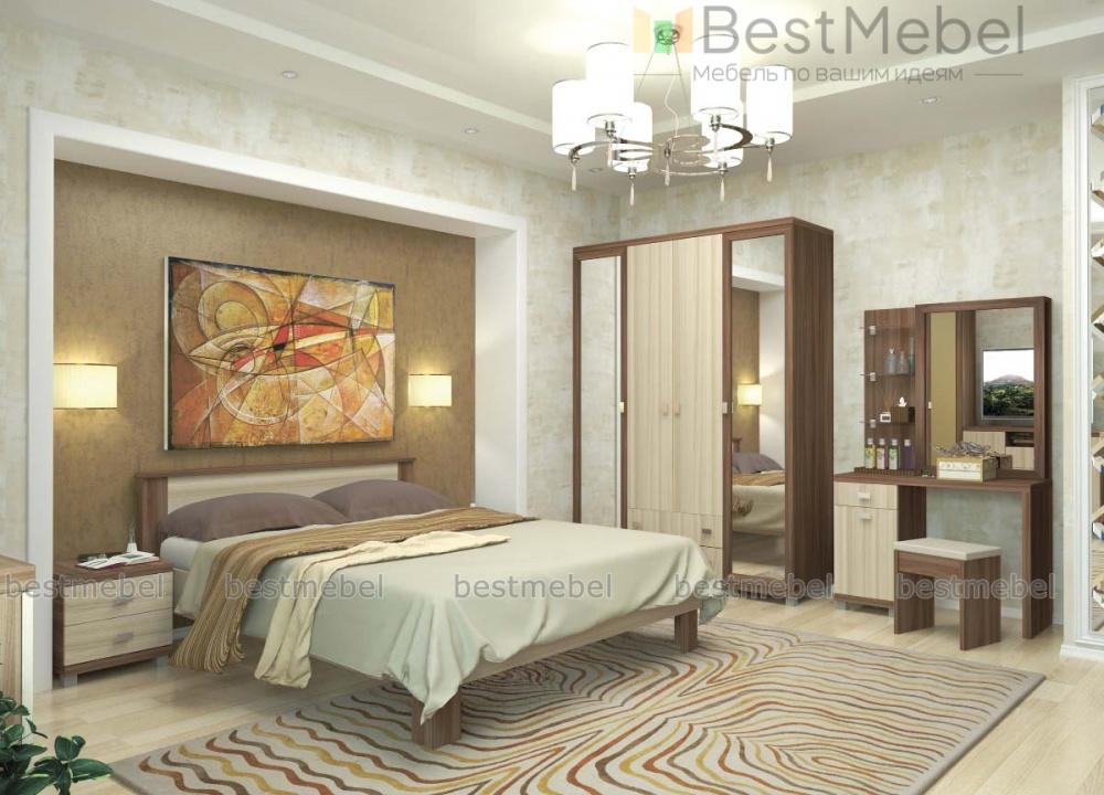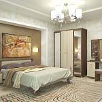 Стильная современная спальня Жасмин 3 BMS – отличный вариант для комфортного отдыха и удобного размещения вашего гардероба. В комплекте вместительный распашной шкаф для одежды и белья, двуспальная кровать и две тумбы, которые, помимо хранения мелочей, могут выступать и в роли столика для ночника или чашки кофе. Приятное дополнение этого гарнитура – туалетный столик – трюмо. Спальня выполнена в натуральных бежевых тонах и смотрится очень уютно.