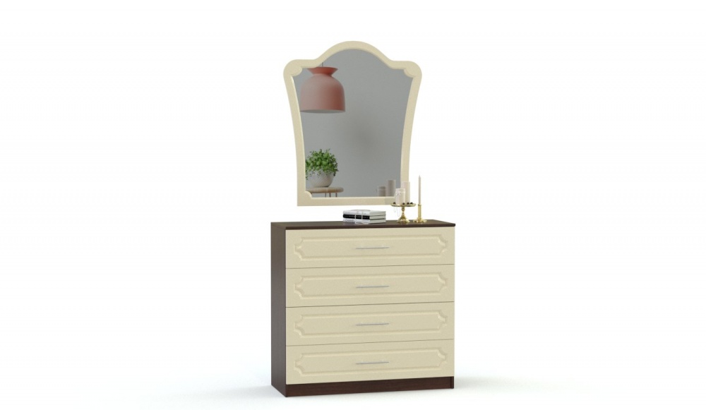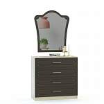 Спальный гарнитур Патриция BMS поможет создать комфортный интерьер в современном классическом стиле. Композиция включает в себя все необходимое для полноценного отдыха и хранения вещей – кровать с высоким изголовьем и прикроватной тумбой, комбинированный платяной шкаф и бельевой комод с навесным фигурным зеркалом. Все предметы выполнены в контрастном сочетании корпуса оттенка венге и светлого фасада с фрезеровкой. Купить спальный гарнитур Патриция BMS приглашаем в наш интернет-магазин, подобрав оптимальные параметры.