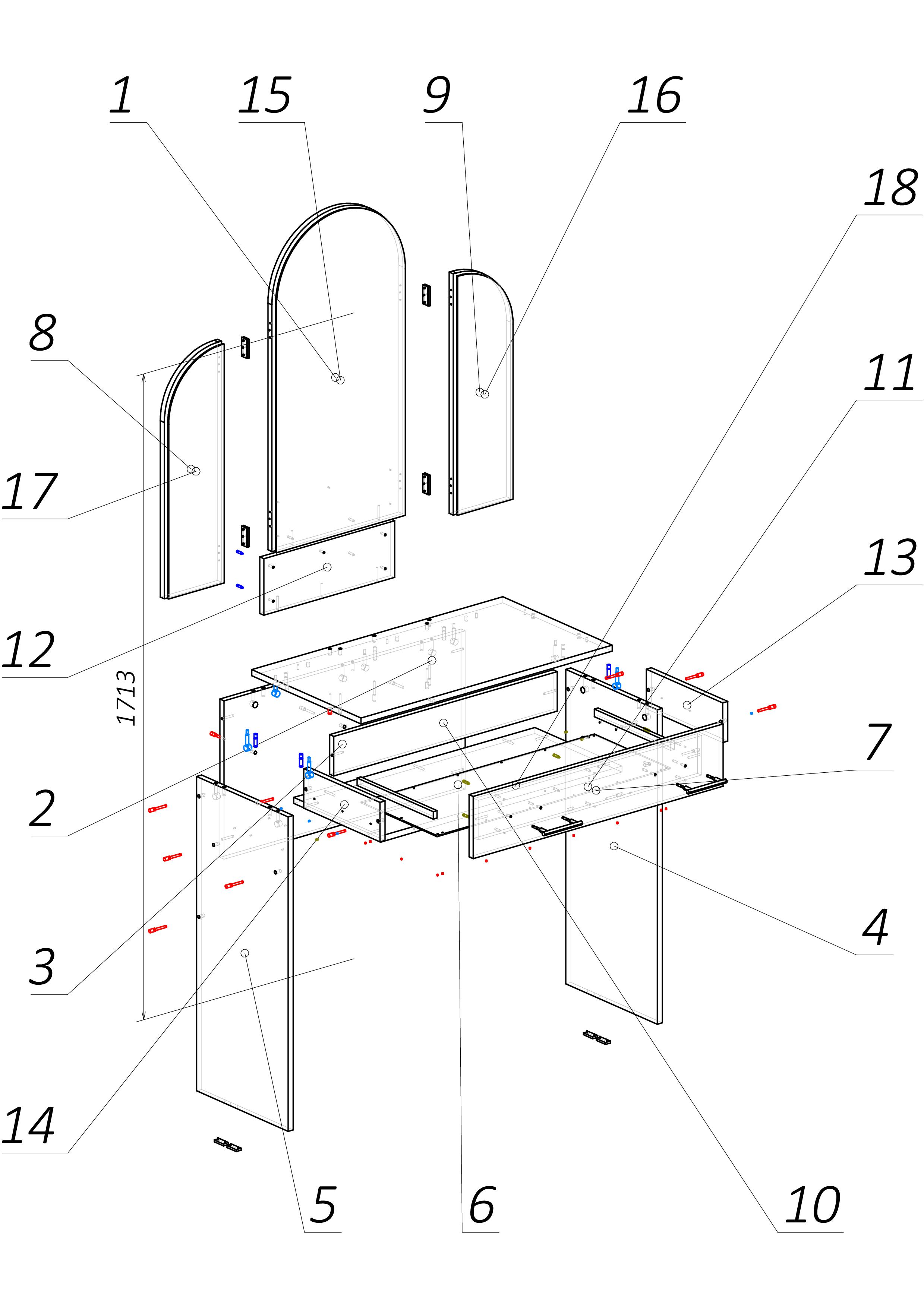 Трельяж: 850 х 800 х 375 мм