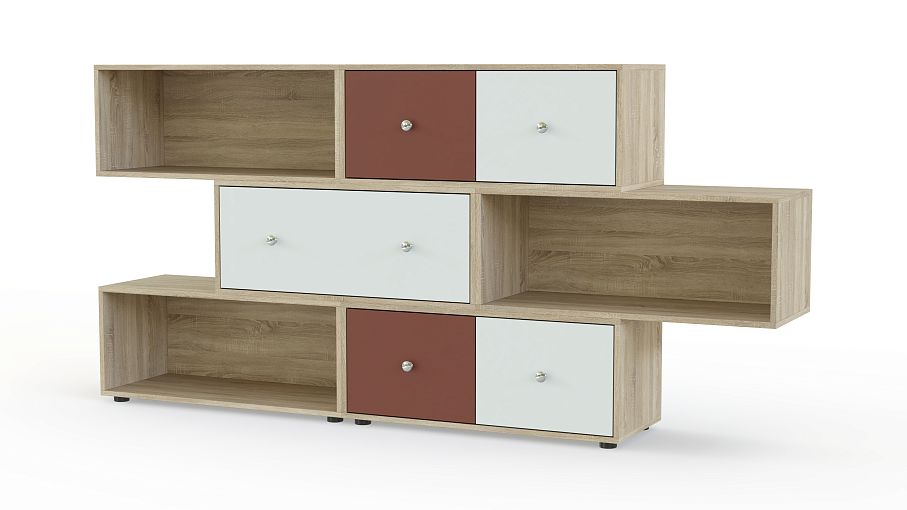 Стеллаж Челси 16 BMS с широкими открытыми секциями и выдвижными ящиками разных размеров словно собран из конструктора лего. Модель дополнит интерьер детского сада или развивающего центра и разместит в удобном для детей доступе коробки с играми, книги и обучающие материалы. Корпус в теплых древесных тонах дополняют цветные фасады, простые в уходе и износостойкие. Купить стеллаж Челси 16 BMS и легко поддерживать порядок в игровой комнате вам поможет наш интернет- магазин.