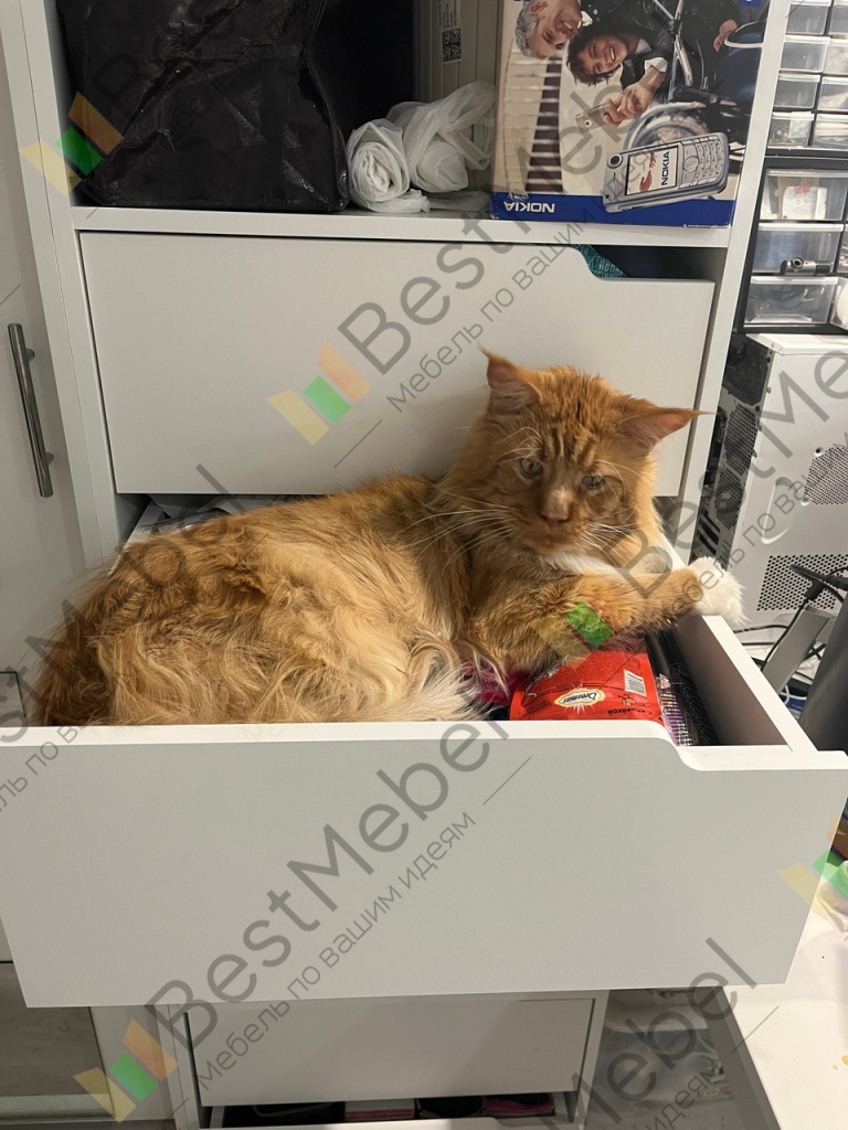 Заказ 00000341133. Люблю эту компанию за то, что все можно добавить и заказать по своим размерам, брала лет 5 назад у них шкафы, отличные, стоят как новенькие. В январе 2025 заказала Стеллаж для одежды Мирта 37 BMS с дополнениями которые мне были нужны, в этот раз как и в прошлый заказала ящики с ДСП дном, они очень хорошо себя показали, прочные удобные, не беспокоюсь, что дно прогнется или тяжелое нельзя класть. У меня кот Мэйн-кун 8 кг. Часто лежит в выдвижном ящике, в котором хранятся его лакомства. По прошлым заказам поняла, что все качественное, не стала заказывать суперпрочную кромку, да и вообще то что мне было моей целью оставила по умолчанию в базовом варианте и всё как в прежние годы великолепно. Привезли и подняли, занесли в квартиру без всяких уговоров, быстро вежливо! Сборщик приехал в удобное для нас время, собрал при нас, быстро и качественно!!!