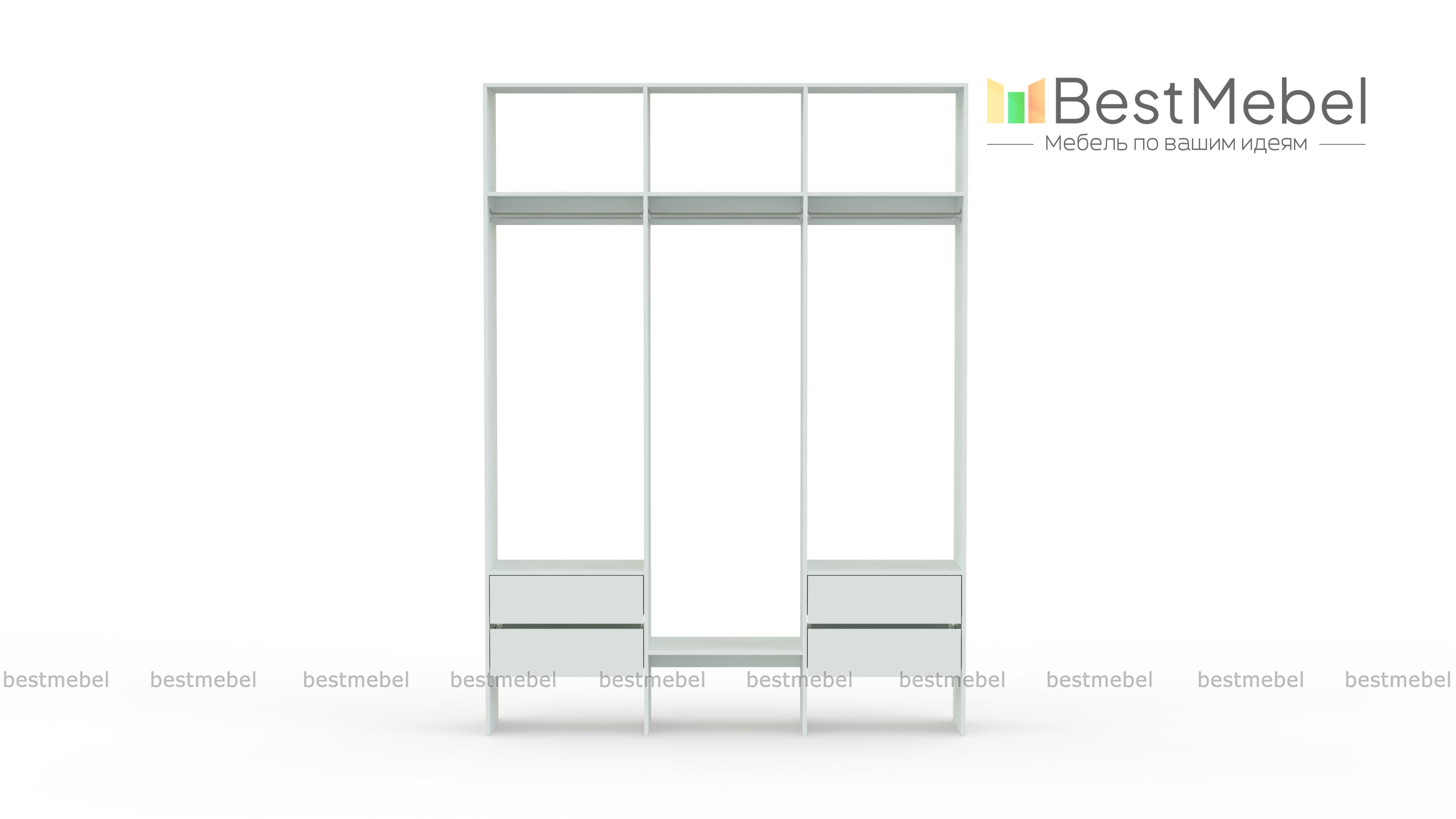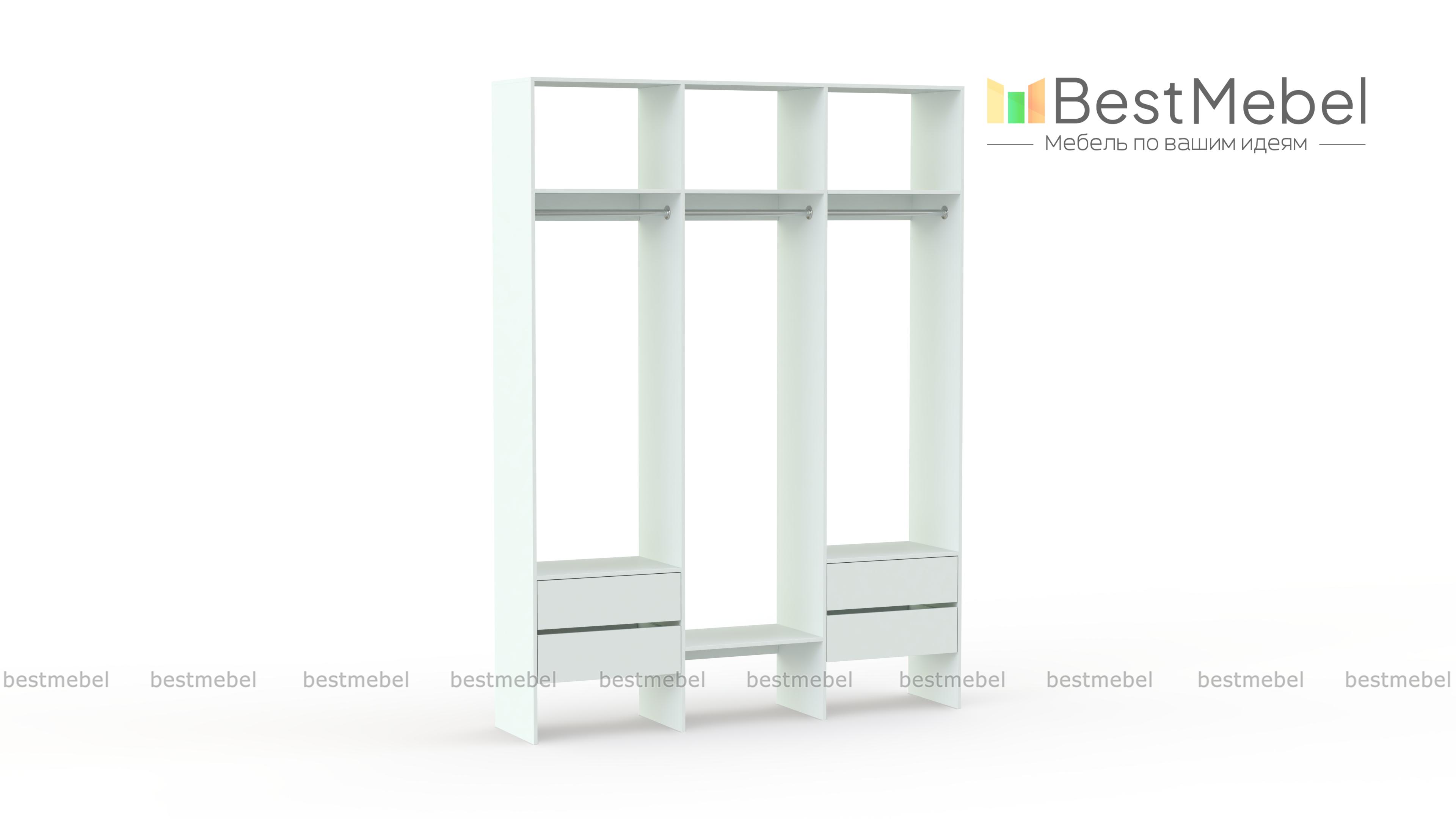 Стеллаж для одежды Мирта 58 BMS — это удобная база для вашей прихожей или гардеробной комнаты. Три перекладины позволяют разместить вешалки с короткой и длинной одеждой, для коробок и сложенных вещей предусмотрены полки, а для мелочей — две пары выдвижных ящиков. Лаконичное оформление и возможность выбора оттенка делают трехсекционный стеллаж практически универсальным. Купить стеллаж для одежды Мирта 58 BMS, изготовленный по вашим размерам, приглашаем в наш интернет-магазин.