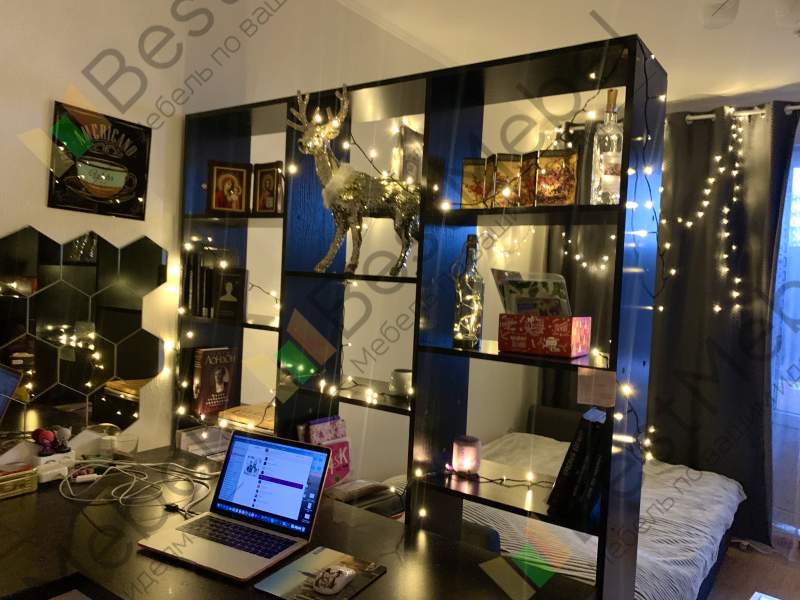 Есть возможность выбрать нужный размер. Очень хорошо вписался в комнату, теперь есть две зоны — для отдыха и сна, в сборке все элементарно — даже не нужна инструкция.Недостатки:Не нашлиКомментарий:Заказ 00000915584, изделие ЭСКИЗ № 00000915584 Стеллаж Эльбрус-3 BMS (1068х1950х220).