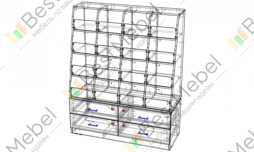 Торговый стеллаж Жасмин 8 BMS оборудован витринной частью с шестнадцатью ячейками и четырьмя выдвижными ящиками-накопителями для хранения товаров, закрывающимися на ключ. Конструкция стеллажа оптимальна для выкладки весовой продукции – сладостей, орехов и сухофруктов. Прозрачные стеклянные ограничители защитят содержимое ячеек от падения, не закрывая обзора. Купить торговый стеллаж Жасмин 8 BMS вы сможете в нашем интернет-магазине, подобрав фурнитуру и цвет по каталогу.