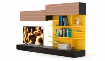 Гостиная Мэй 12 BMS привлекает сочетанием минималистичного дизайна и смелого цветового решения. Темные древесные тона скомбинированы с черным глянцем и теплыми желтыми вставками с оттенком металлик. Модульная система включает в себя широкую низкую тумбу под аппаратуру и предметы декора, панель с открытыми книжными полками и два навесных горизонтальных шкафа с глухими фасадами. Купить гостиную Мэй 12 BMS и нестандартно оформить телезону вы сможете с помощью нашего интернет-магазина.