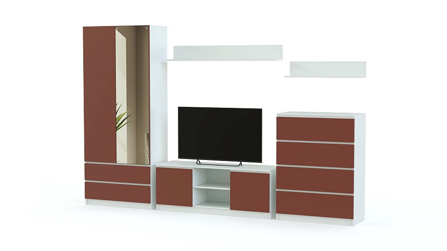 Гостиная Форте 6 BMS – это пять практичных модулей, которые дополнят современные интерьеры в стиле минимализм и хай-тек. Модель отличают лаконичность, функциональность и характерное цветовое решение – матовые текстуры и контрастные цвета. В комплект входят комбинированный с ящиками двухдверный шкаф, низкая тумба под ТВ, вместительный комод и две навесные открытые полки. Дверцы без ручек могут быть оснащены эргономичной системой открывания легким нажатием на фасад. Купить гостиную Форте 6 BMS по демократичной цене вы сможете в нашем интернет-магазине.
