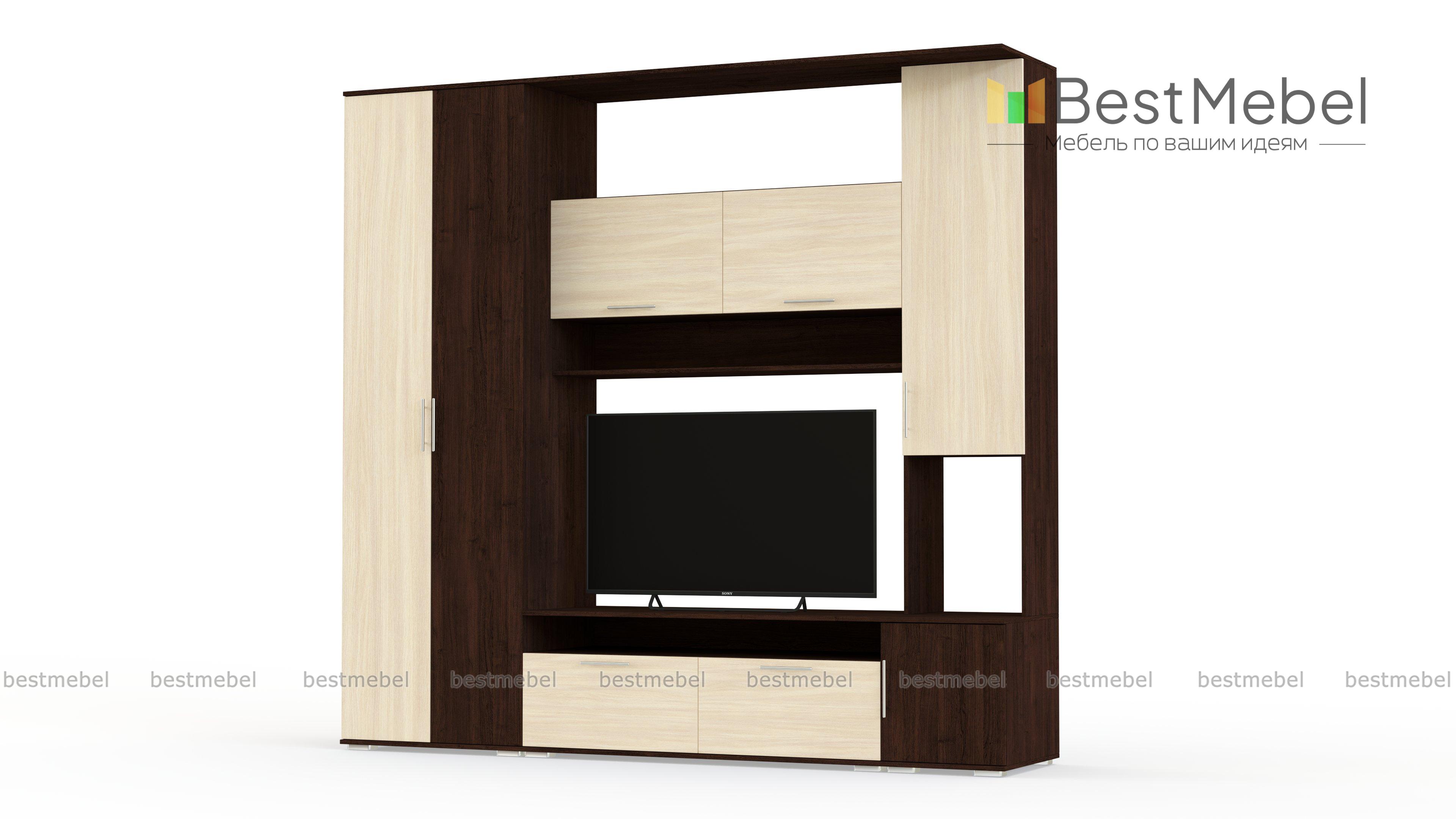 Стенка Аллегро BMS поможет вам оформить телезону и компактно разместить вещи. Геометрическая современная композиция состоит из двухдверного платяного шкафа, тумбы под ТВ, распашного шкафчика с нишей и книжных полок. Светлые оттенки в отделке корпуса и фасадов скрадывают габариты стенки, придавая ей легкость, а ламинированное покрытие надолго сохраняет эстетичный внешний вид. Купить стенку Аллегро BMS вы сможете в нашем интернет-магазине с выбором цвета и размеров.