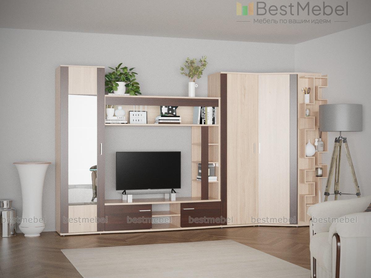 Практичный современный комплект Берри Композиция 1 BMS создаст в вашей гостиной уютную атмосферу и позволит максимально удобно разместить одежду и предметы декора. Угловые шкафы сэкономят пространство, а широкая столешница тумбы подойдет для телевизора с большой диагональю. Шкаф – витрина с тонированным стеклом оборудован эффектной подсветкой. Для мелочей, книг и сувениров в этой модели целых два стеллажа – большой навесной и малый. Мебель выполнена в контрастных цветах и декорирована металлическими ручками.