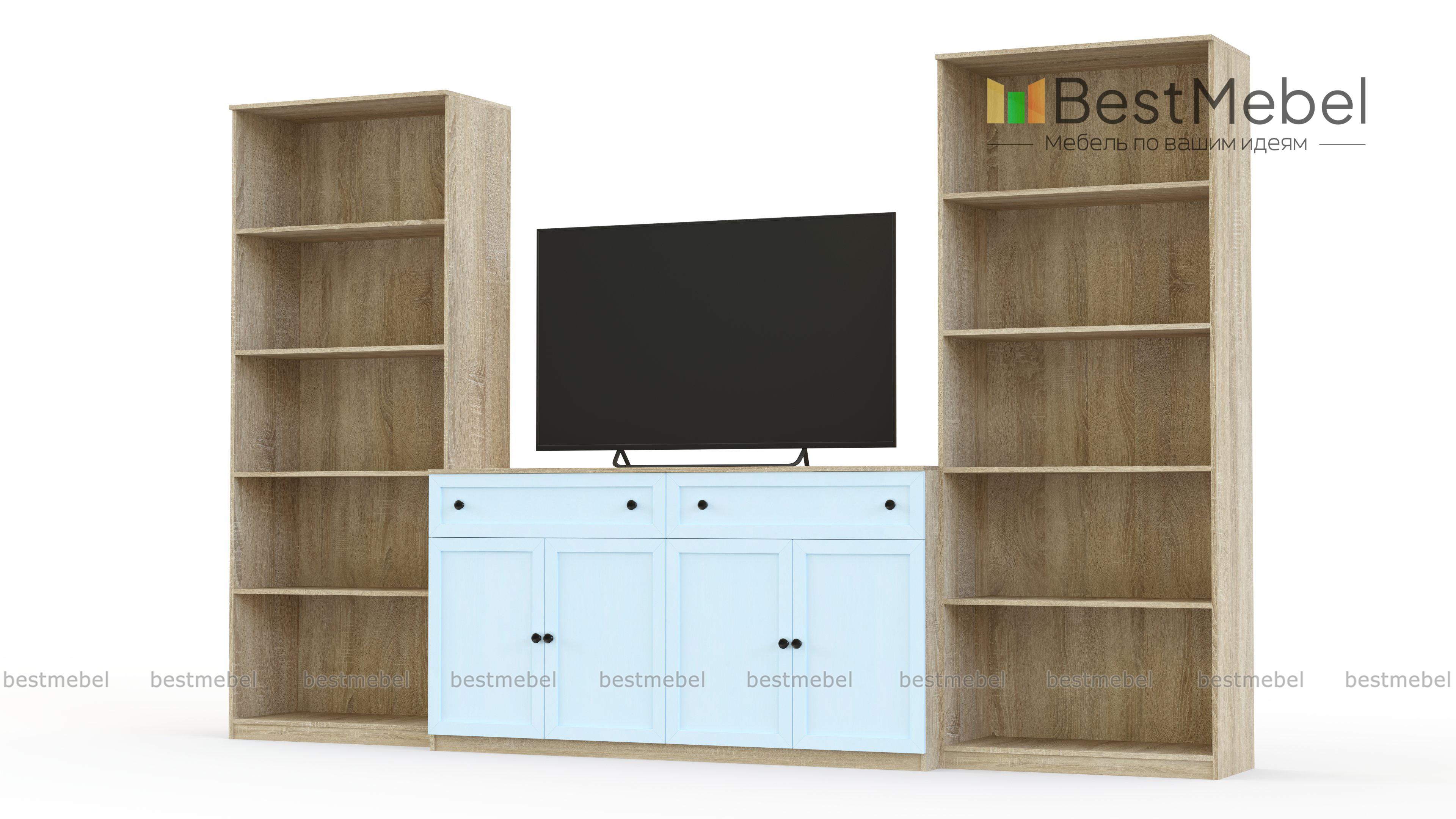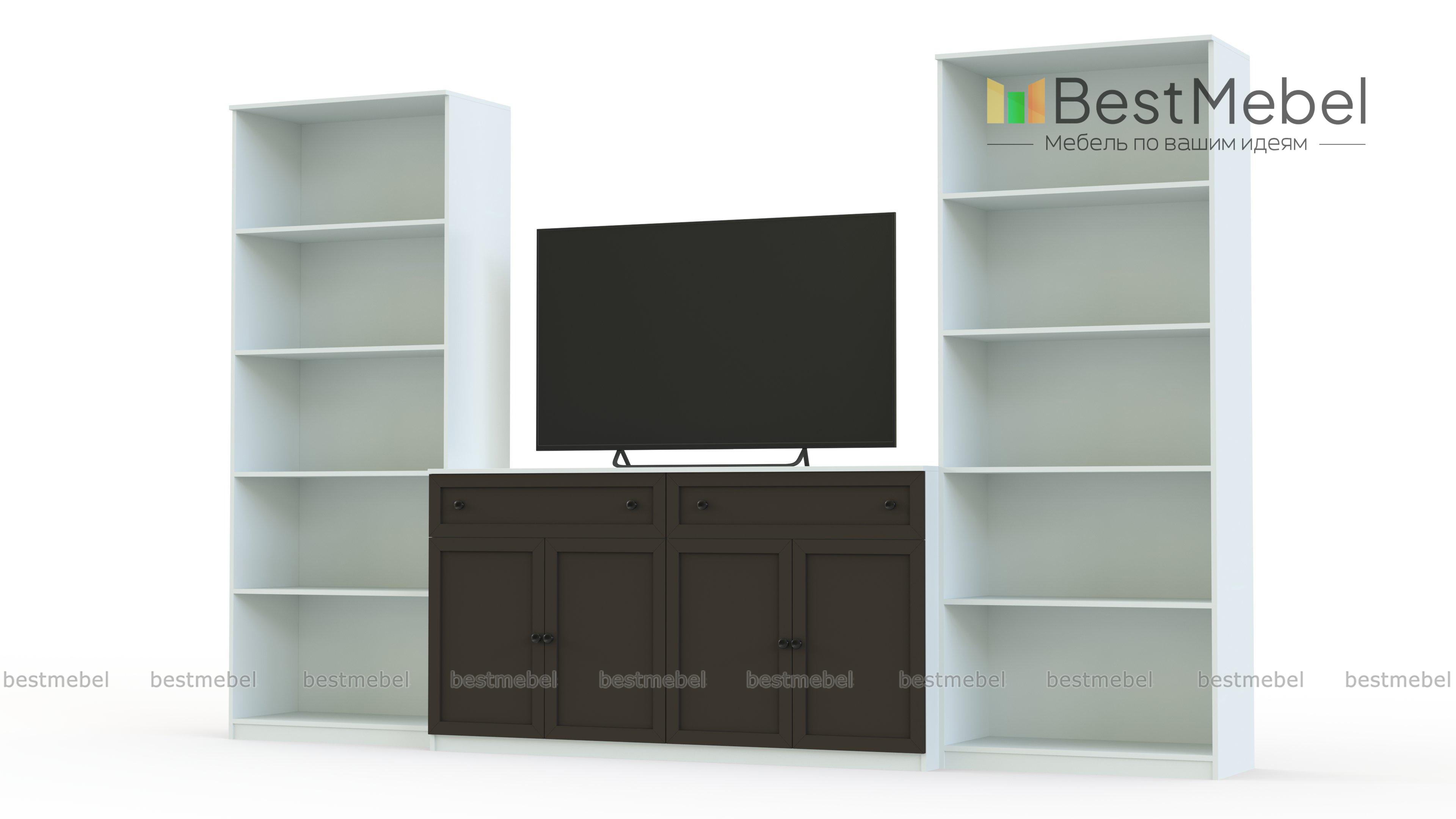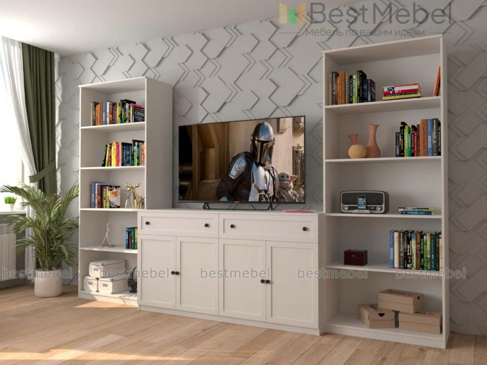 Стенка для гостиной Ханта 4 BMS представляет собой модульную композицию в скандинавском стиле, легкую и функциональную. Оформить зону ТВ, разместить книги, интерьерные украшения и множество мелочей помогут вам два высоких стеллажа и широкая тумба, оборудованная выдвижными ящиками и глухими распашными отделениями с полками. Комплект выполнен в белом цвете, фрезерованные фасады оснащены контрастными ручками-кнопками. Купить стенку для гостиной Ханта 4 BMS приглашаем к нам в интернет-магазин.