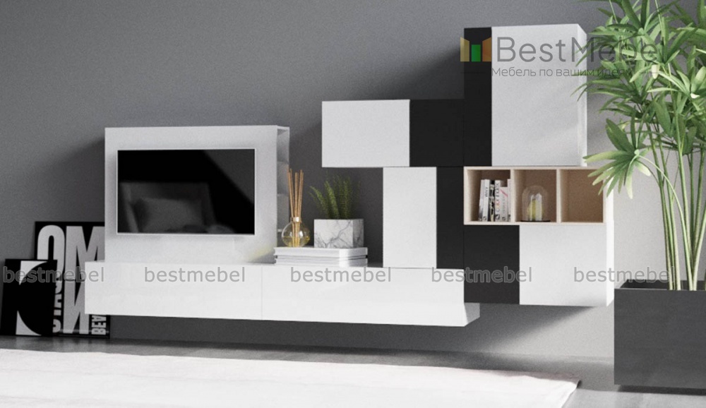 Стенка для гостиной Вариант 63 BMS будет гармонично смотреться и в просторном, и в небольшом помещении. Навесная модульная композиция отличается эргономичным дизайном и контрастным черно-белым цветовым решением. Эффектная разноуровневая стенка оборудована глухими распашными отделениями, книжной полкой и панелью под ТВ с торцевыми отделениями для мелочей. Дверцы со сплошными глянцевыми фасадами без привычных ручек открываются легким нажатием. Купить стенку для гостиной Вариант 63 BMS вы сможете в нашем интернет-магазине.