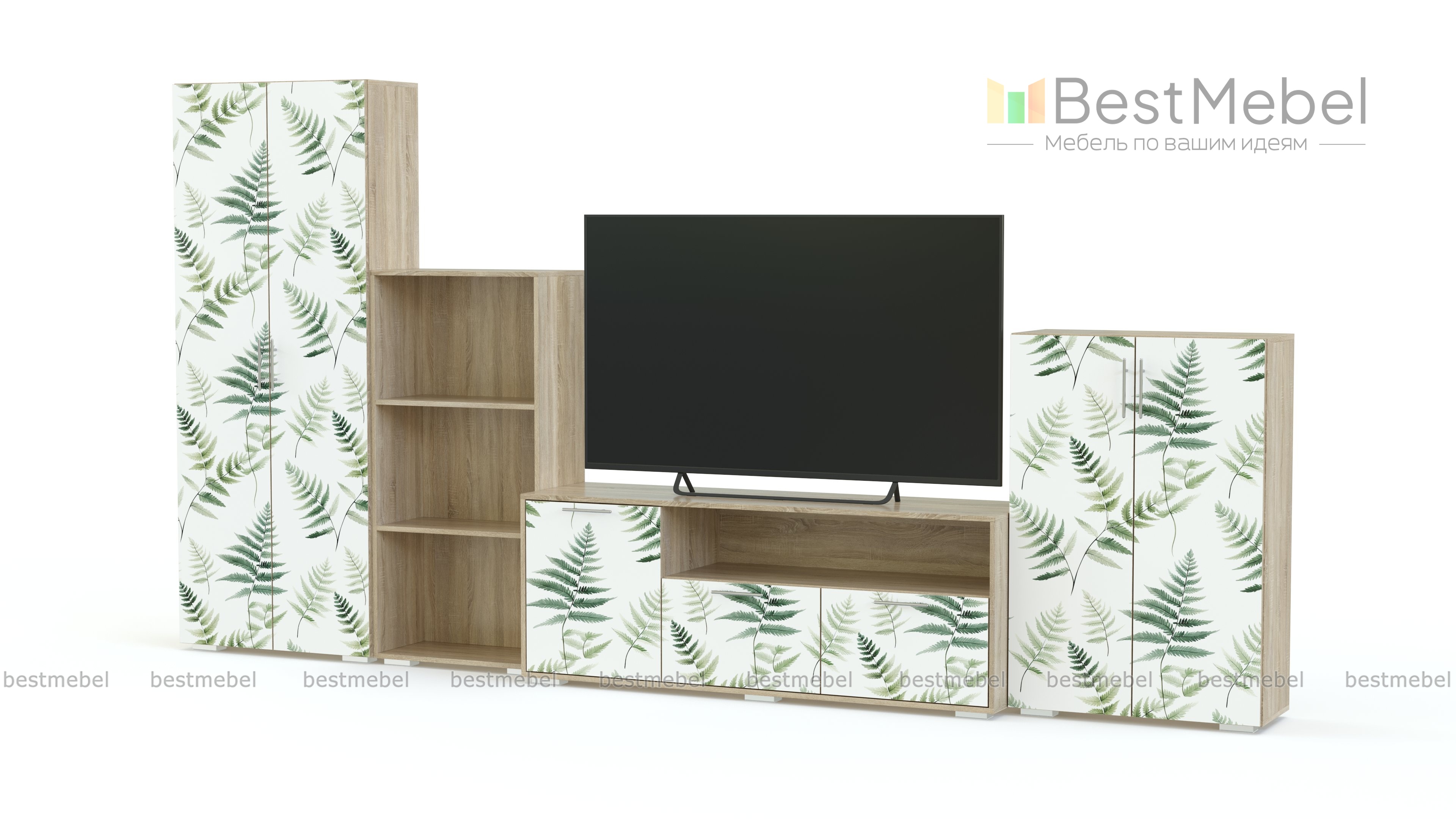 Стенка для гостиной Юлианна 10 BMS выполнена в древесных тонах, а выразительности простому дизайну придают украшенные фотопечатью фасады. Входящие в комплект модули легко комбинируются между собой, создавая единое стилевое пространство. Телевизионная тумба дополнена стеллажом для книг и декора, для хранения одежды и бытовых вещей предусмотрены платяной шкаф и высокая распашная тумба. Купить стенку для гостиной Юлианна 10 BMS в необходимых цветах и размерах приглашаем в наш интернет-магазин.