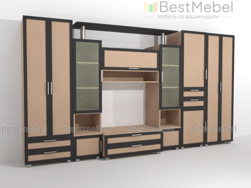 Стенка ГОЛИАФ BMS – крупногабаритная модель в современном стиле, которая станет выгодным решением для владельцев просторных гостиных. Стенка выполнена в универсальной контрастной расцветке и отличается редкой вместительностью. Вы легко разместите все необходимое, разгрузив другие помещения дома. В комплекте два платяных шкафа, комбинированный пенал, тумба под ТВ, витрины, открытые полки и навесная закрытая секция. Купить стенку ГОЛИАФ BMS по демократичной цене вы сможете в нашем интернет-магазине.