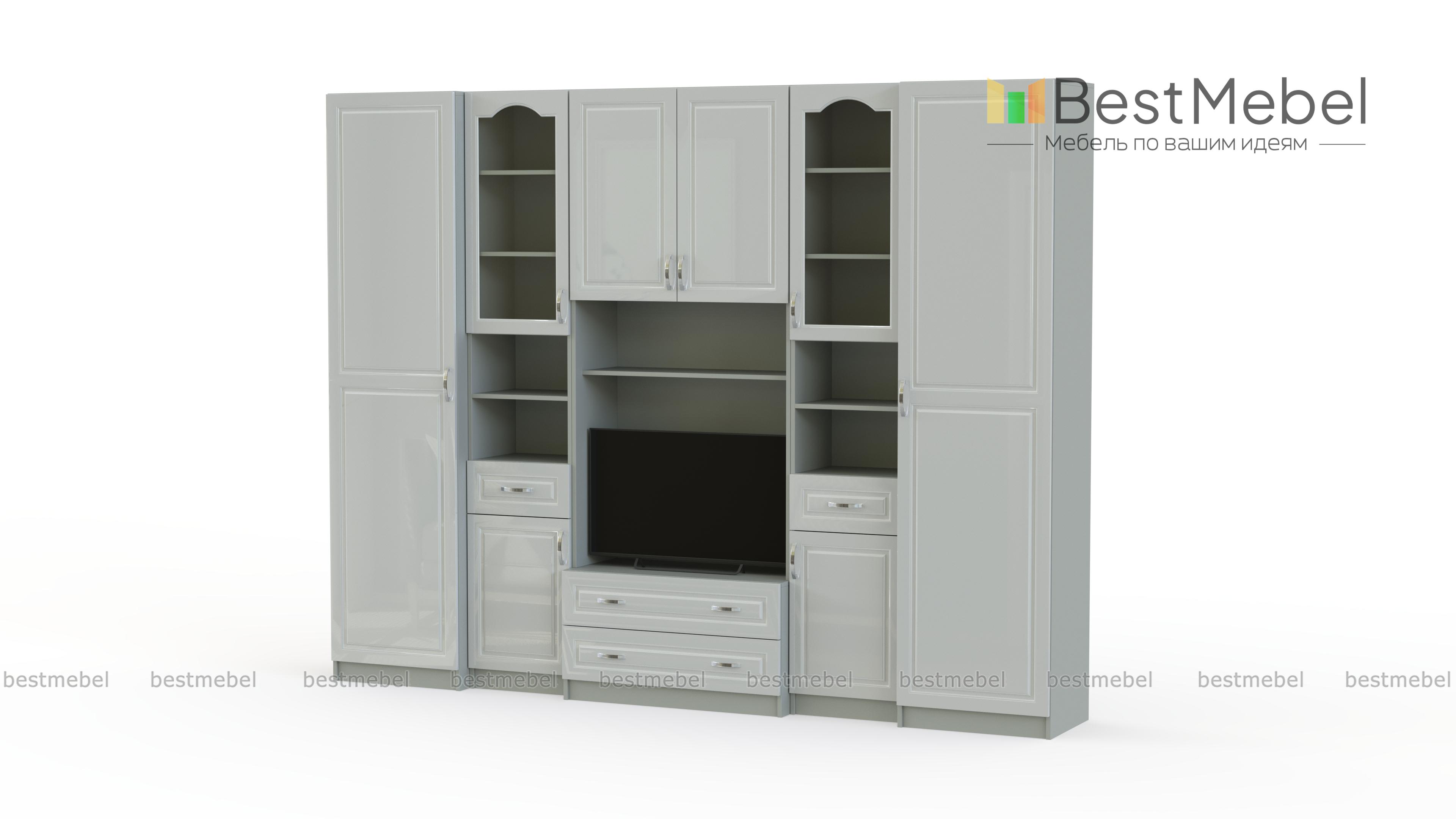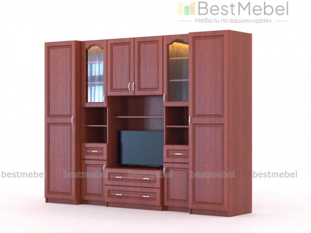 Стенка Лувр 8 BMS – классическая модель с фрезерованными рамочными фасадами для элегантной гостиной. В центре располагается секция с нишей под ТВ, тумбой с выдвижными ящиками, открытой полкой и распашной антресолью, а по бокам – комбинированные витрины и пеналы для одежды и домашнего текстиля. Благодаря исполнению в теплых терракотовых тонах стенка легко вписывается в интерьеры разного типа и делает домашнюю атмосферу уютной. Купить стенку Лувр 8 BMS вы сможете в нашем интернет-магазине по доступной цене.