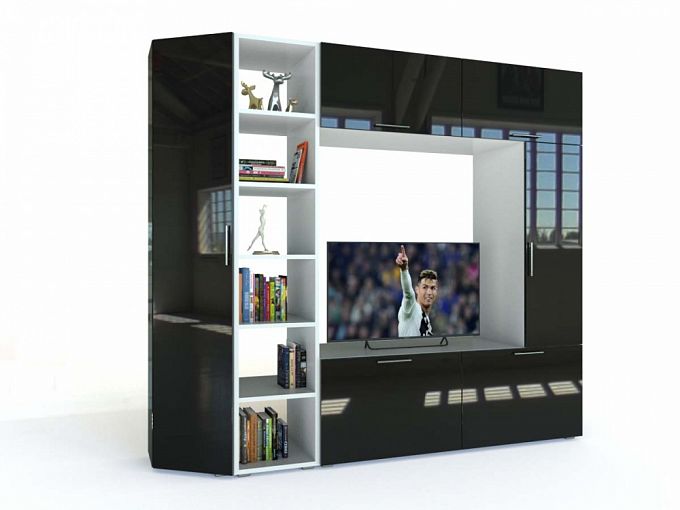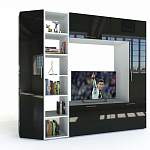 Стенка Марианна 1 BMS отличается строгой геометрией формы, которую подчеркивает контрастная черно-белая гамма. Модульная композиция с глянцевыми фасадами эффектно оформит зону ТВ, разместит книги, интерьерные украшения, домашний текстиль и многое другое. Стенка с просторной нишей в центре объединила тумбу под аппаратуру, стеллаж, навесную закрытую полку, прямой и скошенный пеналы. Купить стенку Марианна 1 BMS вы сможете в нашем интернет-магазине, подобрав оптимальные параметры.