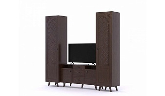 Стенка Мария BMS отличается классическим дизайном и практичной модульной конструкцией, а компактные размеры делают набор прекрасным выбором для небольших гостиных. Композиция объединила широкую низкую тумбу под аппаратуру с ящиками, распашными отделениями и нишами и два пенала с бельевыми полками. Выполненные в темном древесном оттенке венге, предметы декорированы по фасаду фрезерованными ромбами. Купить стенку Мария BMS приглашаем выгодно в наш интернет-магазин.