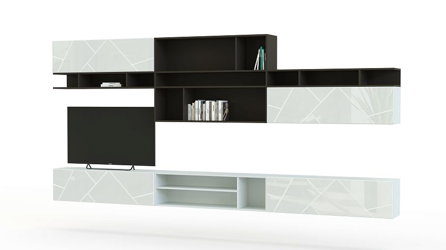 Стенка Санни 1 BMS – это эффектный и функциональный ультрасовременный дизайн и практичная модульная конструкция. Навесная композиция включает в себя тумбу под аппаратуру, открытые полки разных размеров для книг и интерьерных украшений и глухие горизонтальные шкафчики с открывающимися вверх дверцами. Нейтральные фасады с геометричным рисунком дополнены яркими цветовыми акцентами. Купить стенку Санни 1 BMS для комфортной гостиной в стиле минимализм приглашаем в наш интернет-магазин.