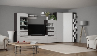 Оригинальные дизайнерские решения, модная контрастная расцветка и функциональность не оставят равнодушными любителей современных интерьеров с элементами классики. Шкафы – витрины этой яркой модели имеют угловые стеклянные вставки и оборудованы подсветкой, фасады ящиков рельефно декорированы. Для предметов декора и книг особенно удобны навесные полки и полка – стеллаж с множеством отделений. Благодаря угловой конструкции, стенка Виспа К5 BMS оптимально впишется в пространство гостиной.
