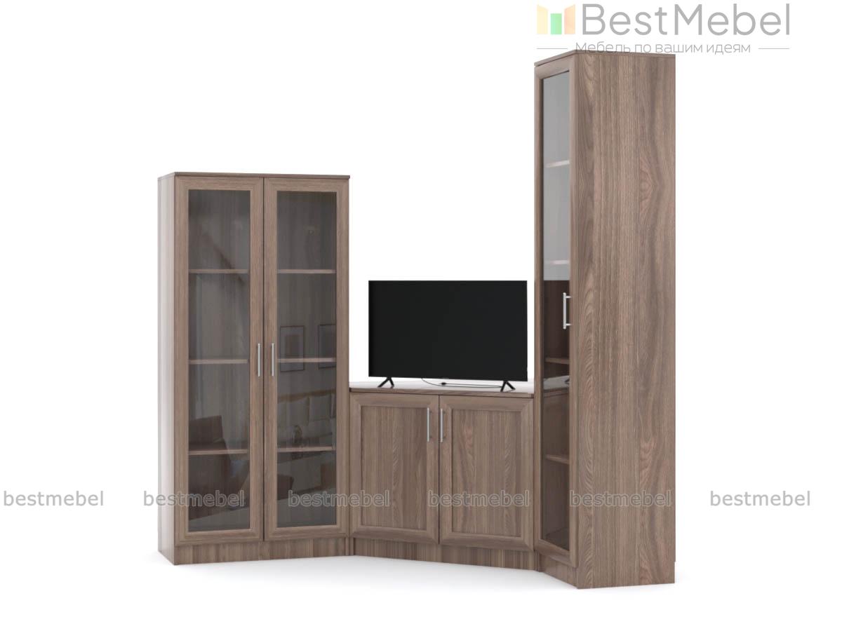 Угловая стенка Классик 17 BMS гармонично впишется в классические интерьеры, поможет оборудовать зону ТВ и разместить домашнюю библиотеку. Модульный комплект включает в себя угловую распашную тумбу, высокий застекленный пенал и двухдверный книжный шкаф. Предметы с рамочными фасадами смотрятся элегантно в древесных тонах, а стеклянные дверцы обеспечивают книгам отличный обзор. Купить угловую стенку Классик 17 BMS приглашаем в наш интернет-магазин по доступной цене.
